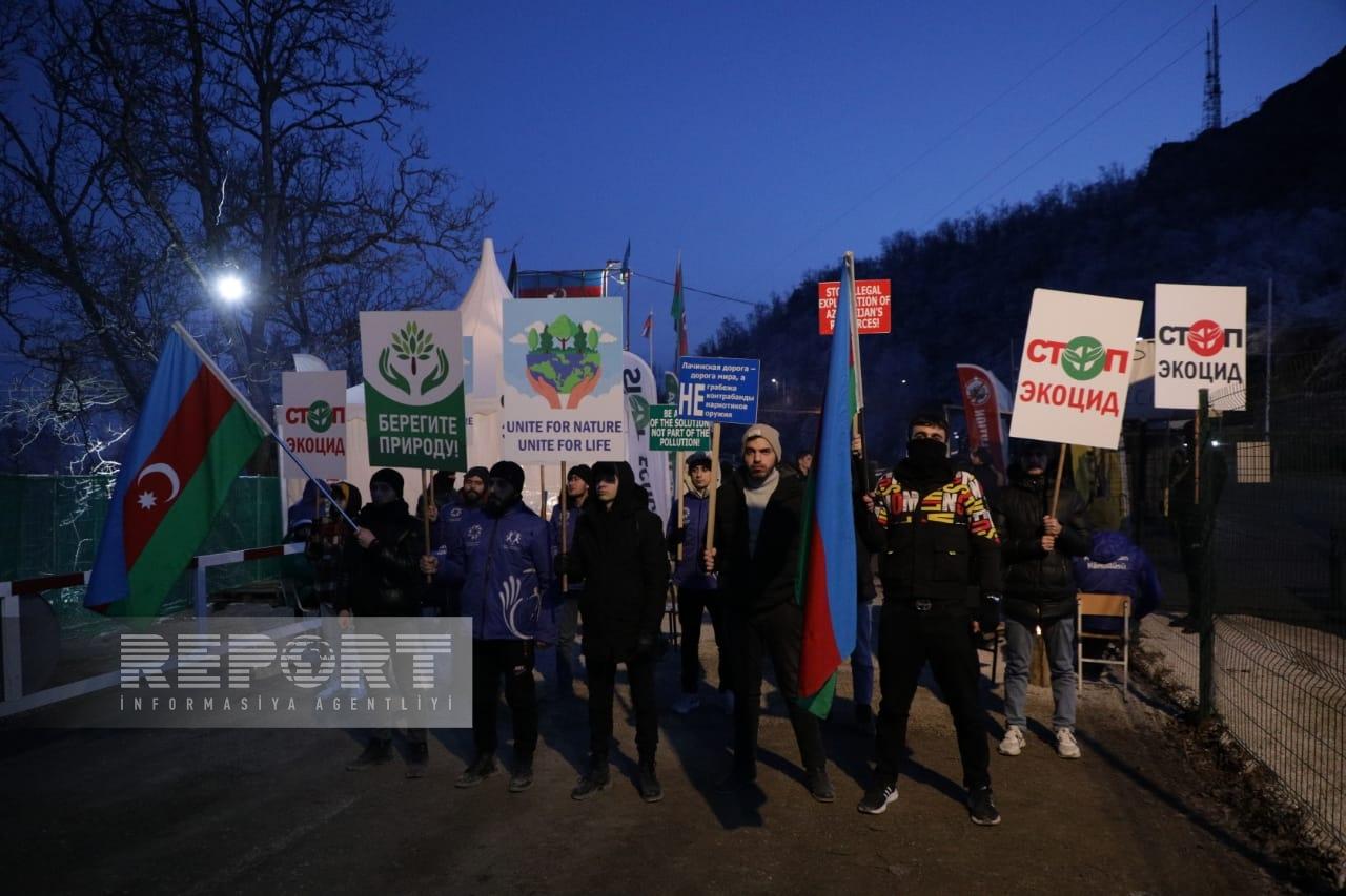 Azərbaycanın Qarabağ iqtisadi rayonunda faydalı yataqların qanunsuz istismarı əleyhinə Xankəndi-Laçın yolunda keçirilən etiraz aksiyası on bir gündür davam edir.