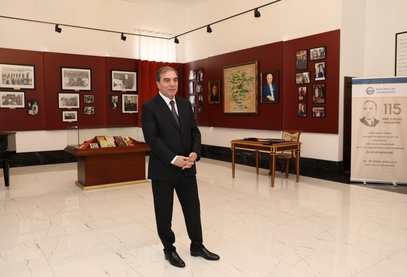 BDU-nun rektoru Elçin Babayev görkəmli alim, pedaqoq Mir Cəlal Paşayevin xatirəsini özündə yaşadan bu muzeyi ziyarət etməyin mənəvi borc olduğunu bildirib. Rektor diqqətə çatdırıb ki, BDU tərəfindən böyük yazıçı və alimin 115 illik yubileyinə həsr olunmuş silsilə tədbirlər keçirilir. BDU-nun tələbələri arasında Mir Cəlal Paşayevin 115 illik yubileyi münasibətilə qısa hekayə müsabiqəsi elan olunub. BDU əməkdaşları və tələbələri “Ədibin evi”ni ziyarət ediblər. Aprelin 18-də isə BDU-da böyük yazıçı və alimin 115 illik yubileyinə həsr olunmuş Respublika elmi konfransı keçirilib: “BDU-nun nüfuzlu professoru, sevimli müəllimi kimi xatirələrdə daim yaşayan Mir Cəlal müəllim həqiqət, düzlük, səmimiyyət aşiqi, ailəsini, övladlarını, tələbələrini sevən, qoruyan şəxsiyyət olub. Onun bu kəlamı indi də dillər əzbəridir: "Həyatımda yaratdığım ən böyük əsər ailəmdir". Bu, Mir Cəlal müəllimin ailəsinə, övladlarına olan məhəbbətinin təzahürü idi".