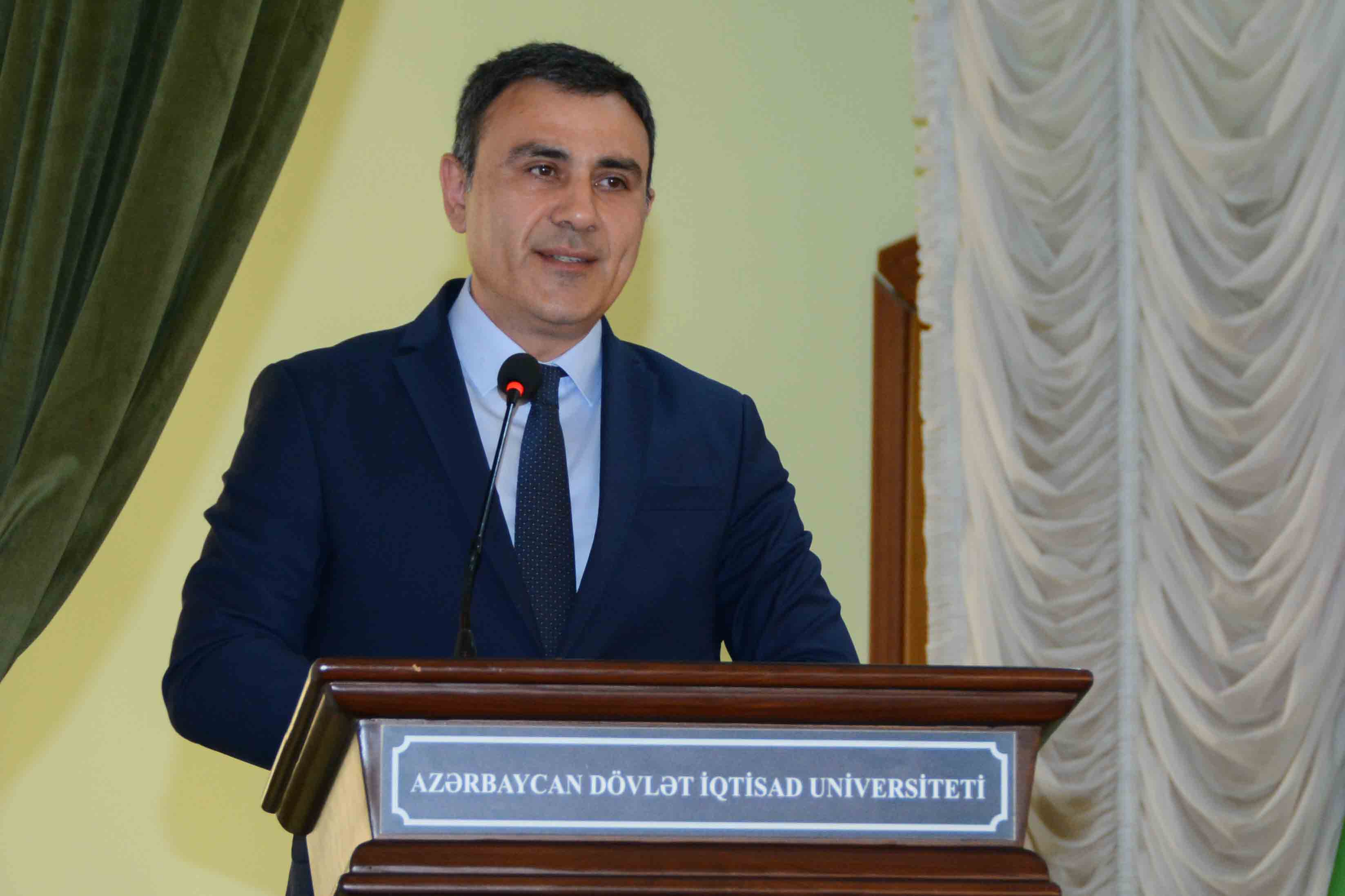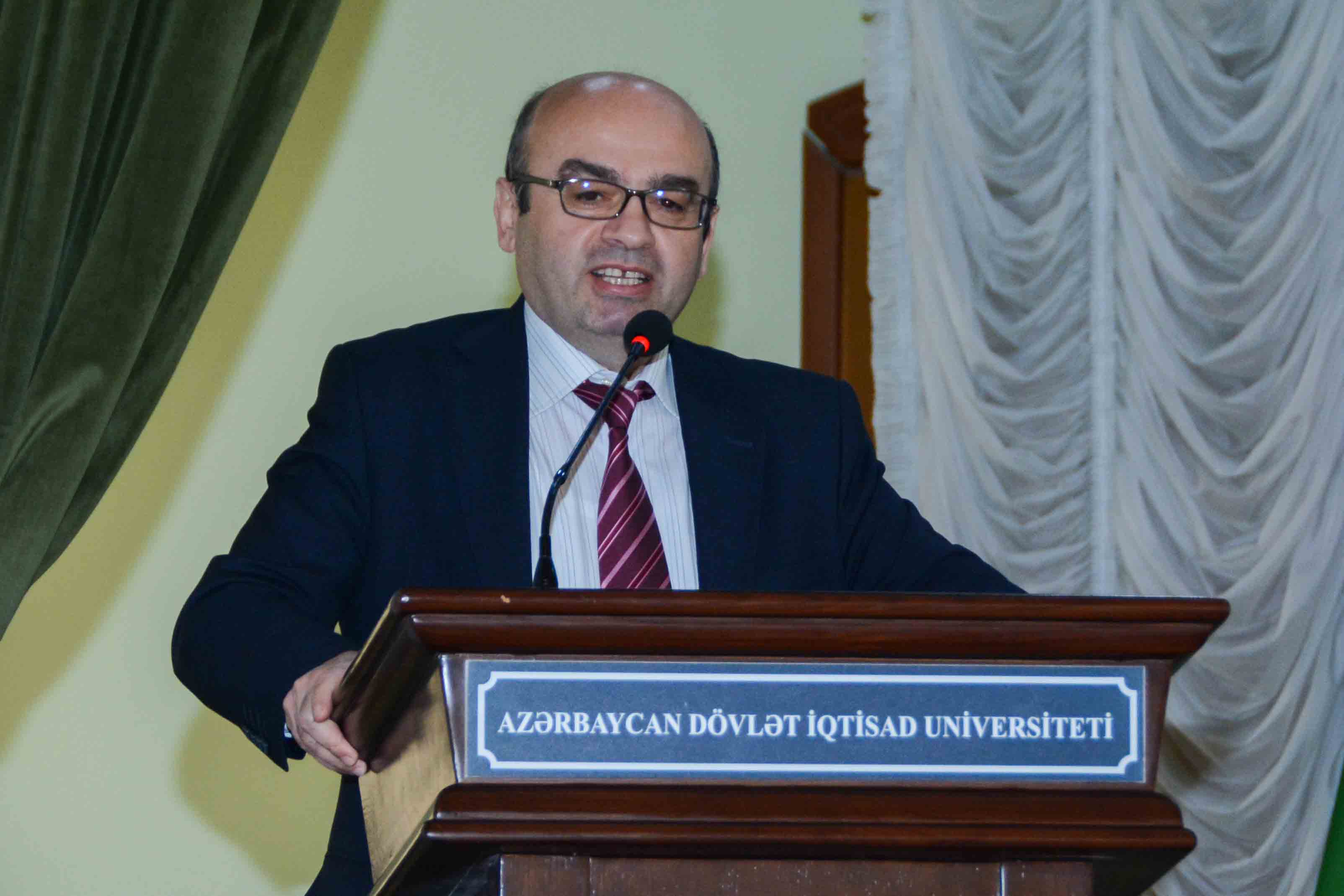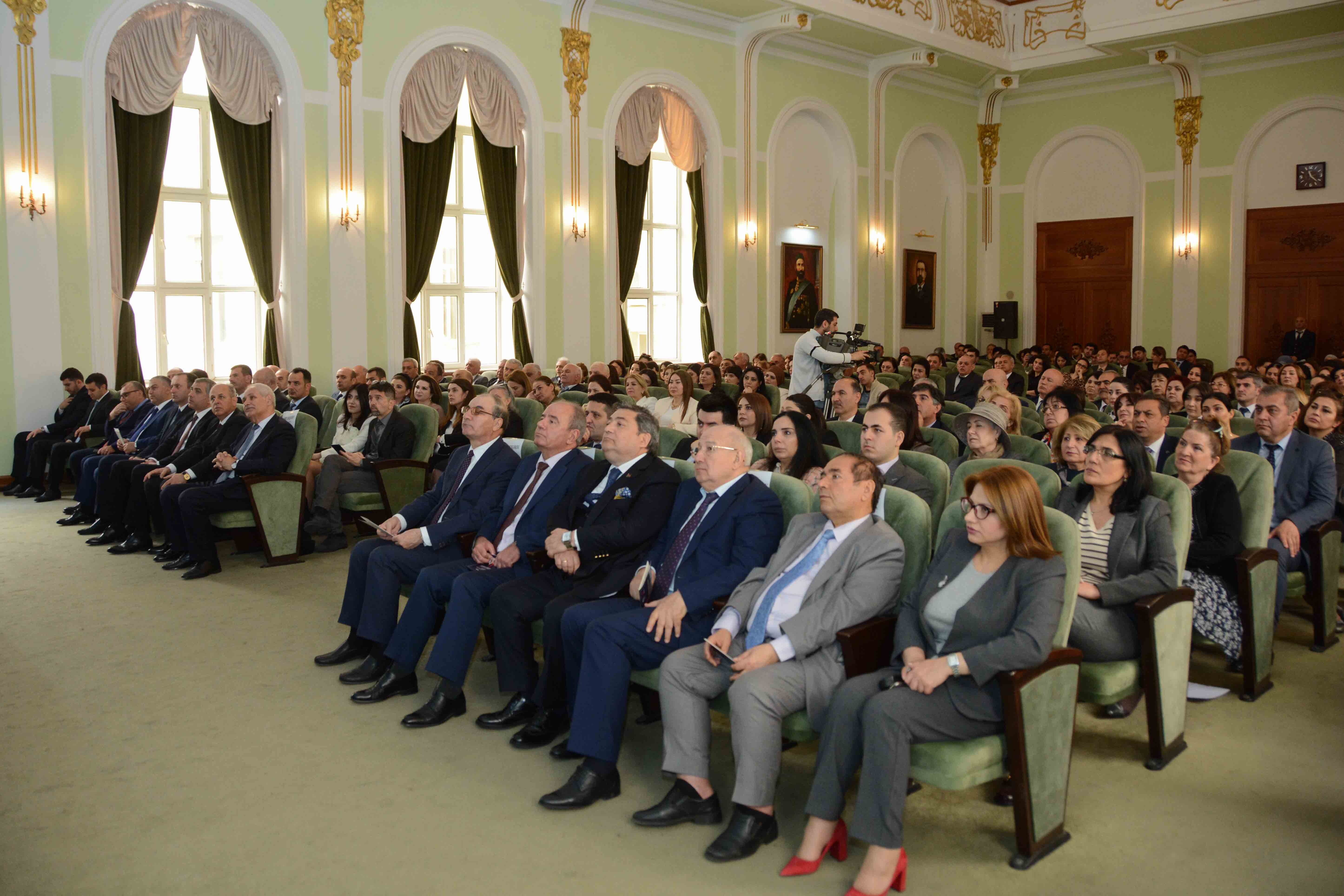 Sonra UNEC-in tədris işləri üzrə prorektoru dosent Gəray Musayev “Heydər Əliyevin ali təhsil siyasəti və yeni universitet modeli” mövzusunda təqdimatla çıxış edib.