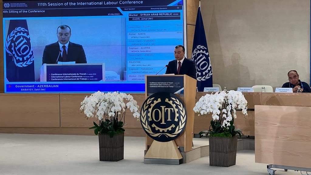 Bildirilib ki, sessiyada çıxış edən Azərbaycan nümayəndə heyətinin rəhbəri, əmək və əhalinin sosial müdafiəsi naziri Sahil Babayev BƏT-in Baş direktoru Jilbert Hunqbonun sessiyanın açılışında etdiyi məruzədəki məsələlərin aktuallığını qeyd edib.