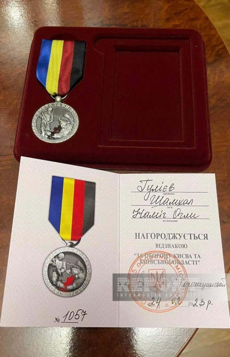 O, Ukrayna Silahlı Qüvvələri tərəfindən Kiyev və Kiyev vilayətinin müdafiəsi uğrunda göstərdiyi xidmətlərinə görə mükafatlandırılıb.