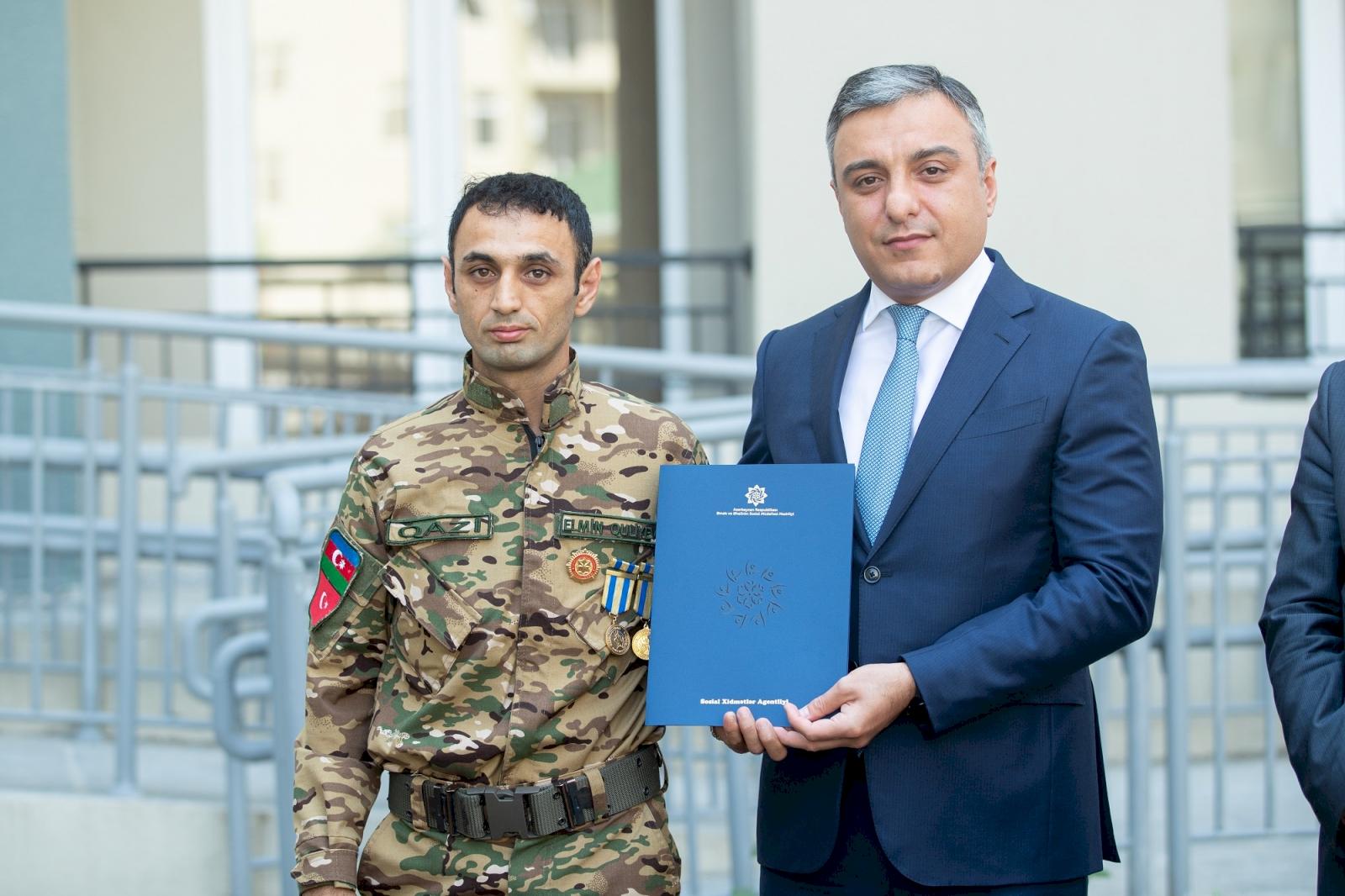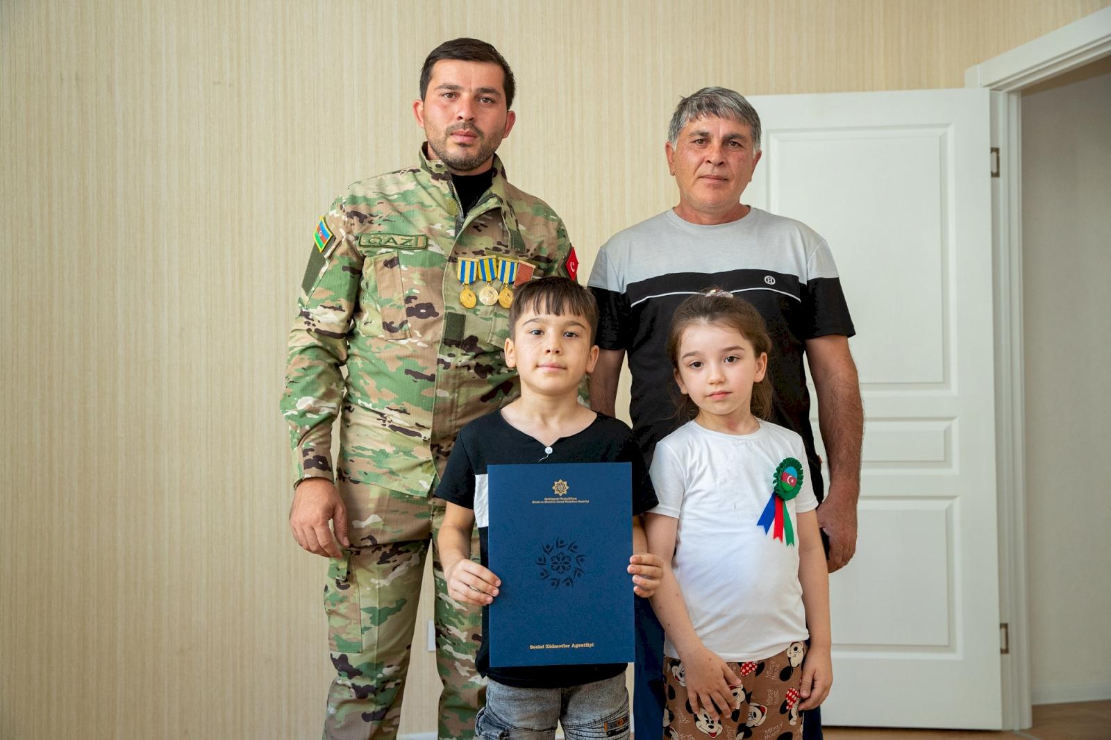 Əmək və Əhalinin Sosial Müdafiəsi Nazirliyi Bakı, Abşeron, Gəncə, Bərdə, Beyləqan, Oğuz, Qazax, Saatlı, Salyan, Tovuz, Ucar, Zaqatala, Bərdə, Xaçmaz, Şabran şəhər və rayonlarında şəhid ailələrinə və müharibə ilə əlaqədar əlilliyi olan şəxslərə 140 mənzil və fərdi ev təqdim edib.