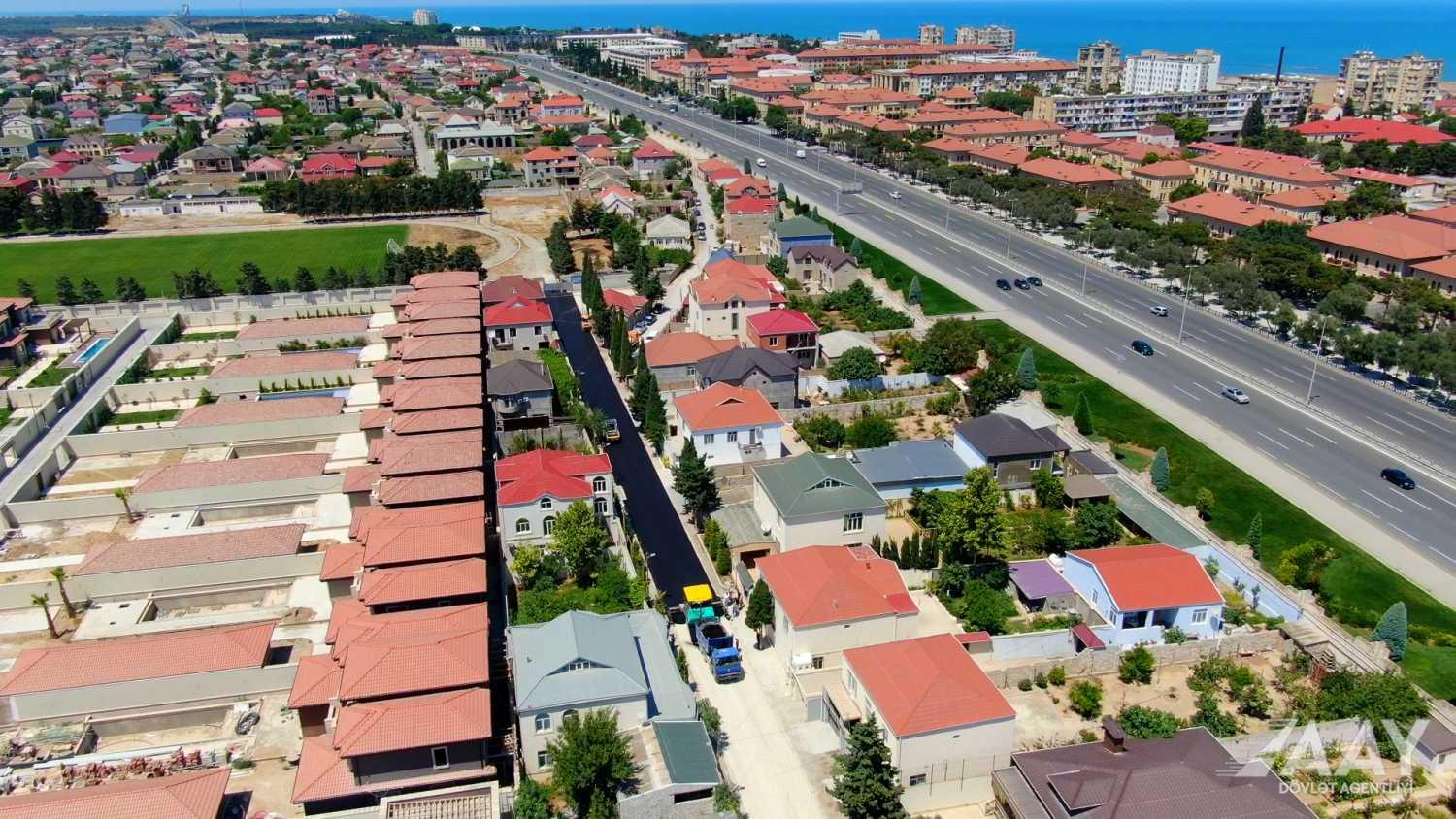 Bakının Xəzər rayonunun Buzovna qəsəbəsinin Qaçaq Nəbi küçəsində təmir işləri aparılır.