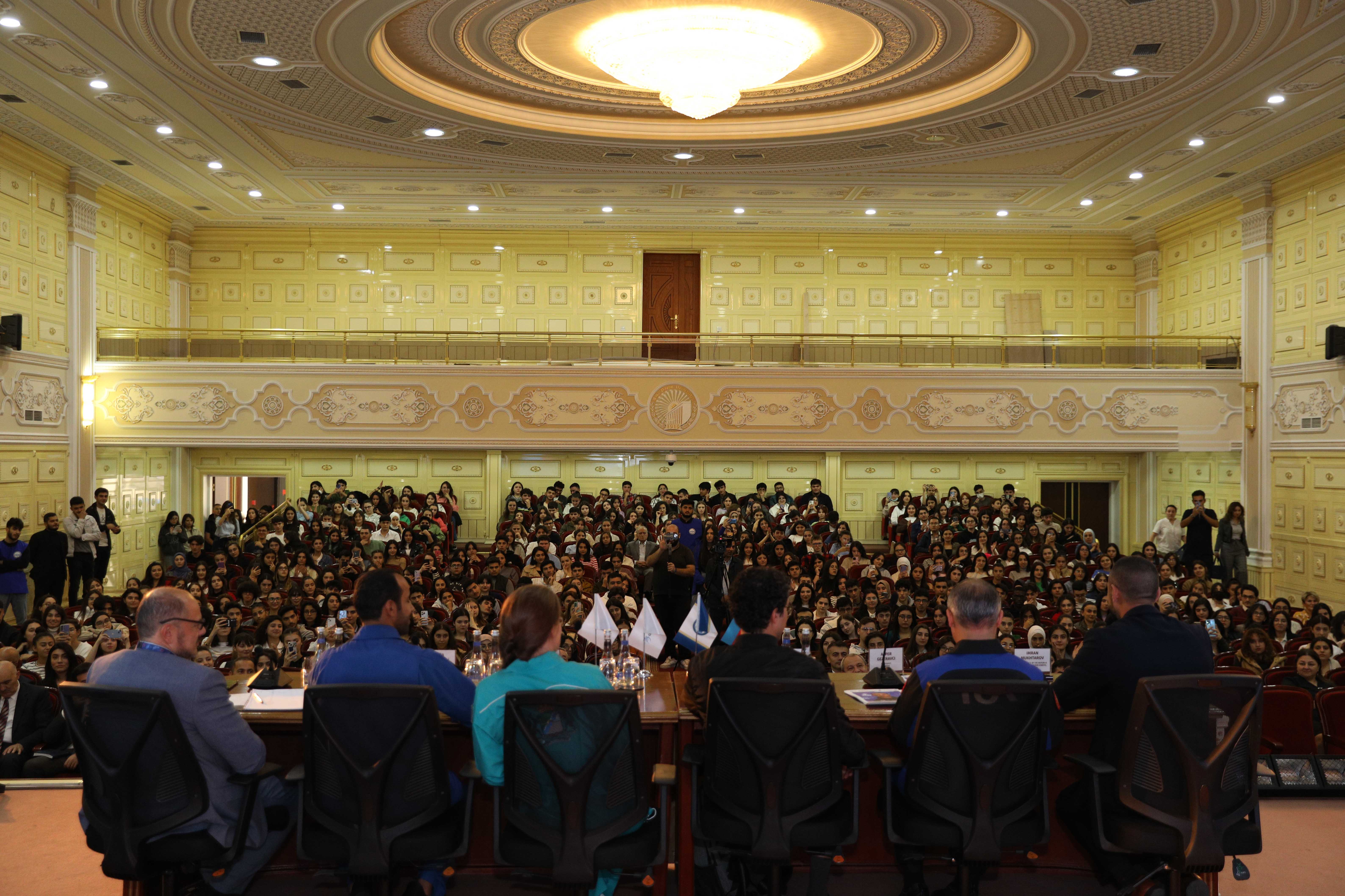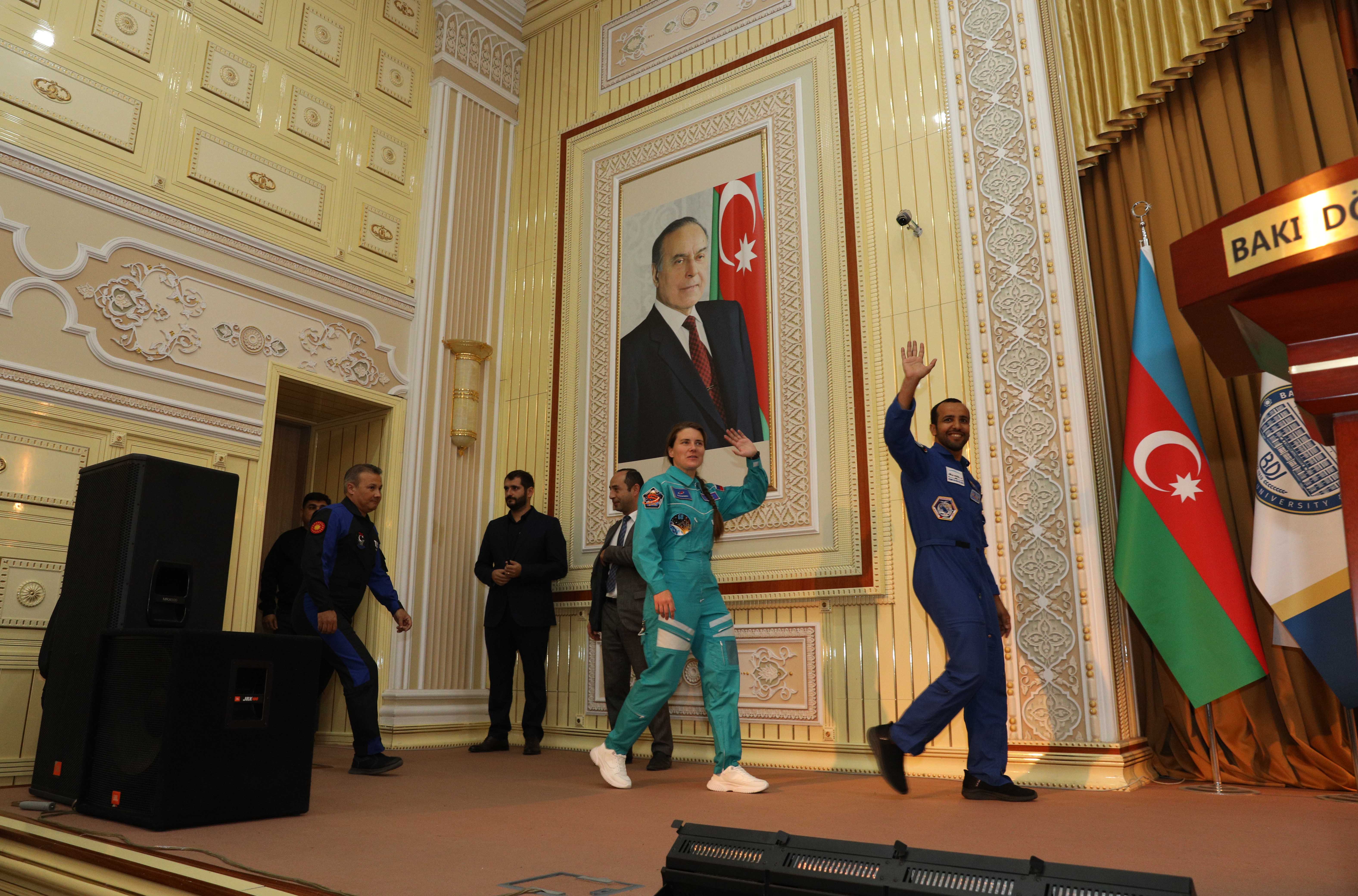 Gənclərlə interaktiv sual-cavab formatında keçirilən görüşdə tanınmış astronavtlar Tuva Atasever, Alper Gezeravci, Anna Kikina, Hazzaa AlMansoori kosmosa səyahət və kosmik missiyaları ilə bağlı təəssüratlarını bölüşüb, sualları cavablandırıb, tələbələrə avtoqraflı şəkillərini hədiyyə ediblər.