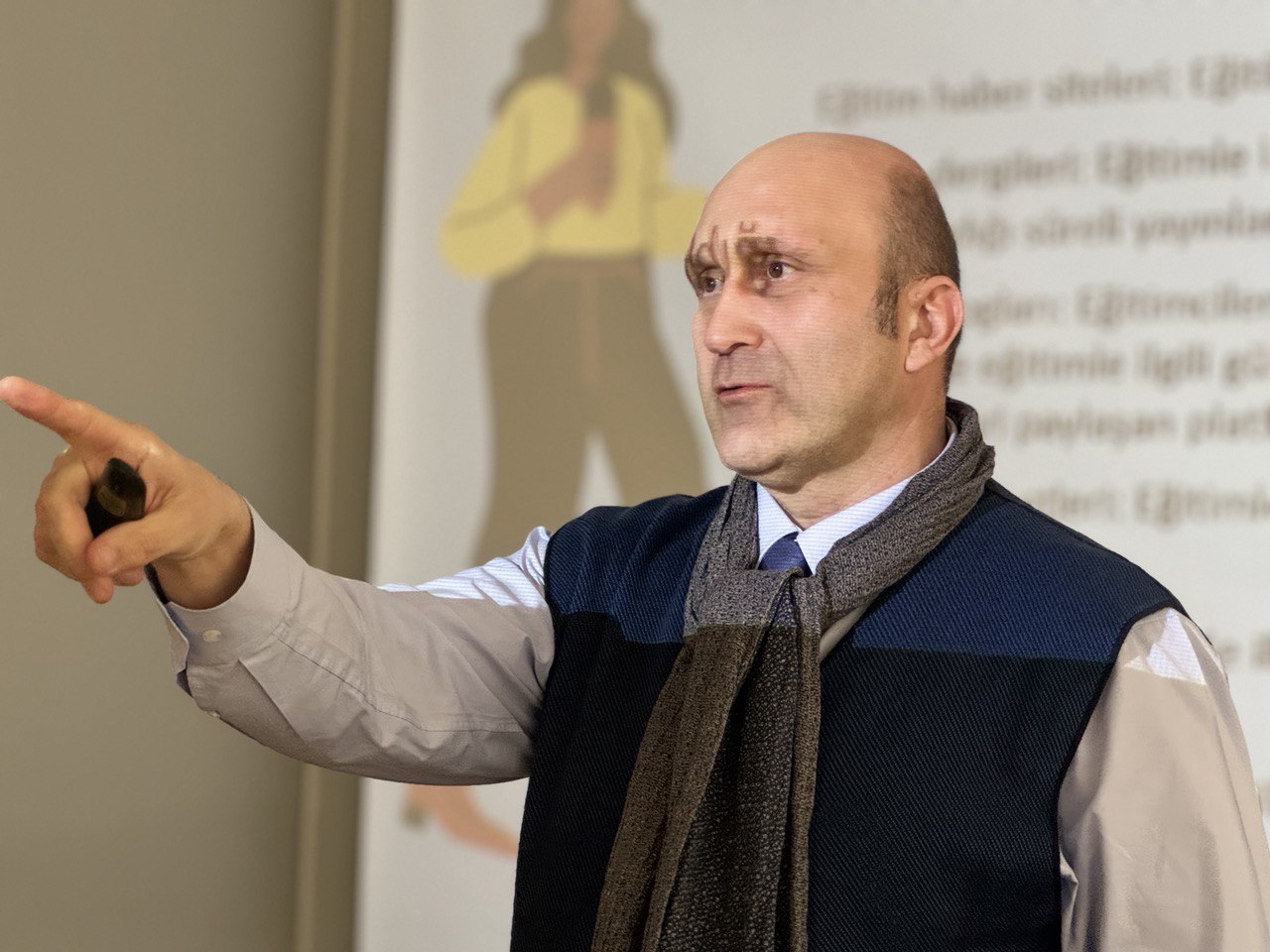 Təlimin davamında Niğde Ömer Halisdemir Universitetinin professoru Emre Ünal media nümayəndələri ilə “Təhsil jurnalisti müsahibə və reportajlarda nəyə diqqət etməlidir?”, “Təhsil müəssisələri ilə necə işləmək lazımdır?”, “Təhsil jurnalisti sosial şəbəkələrdə fəaliyyətini necə qurmalıdır?” mövzuları üzrə müzakirələr aparıb.