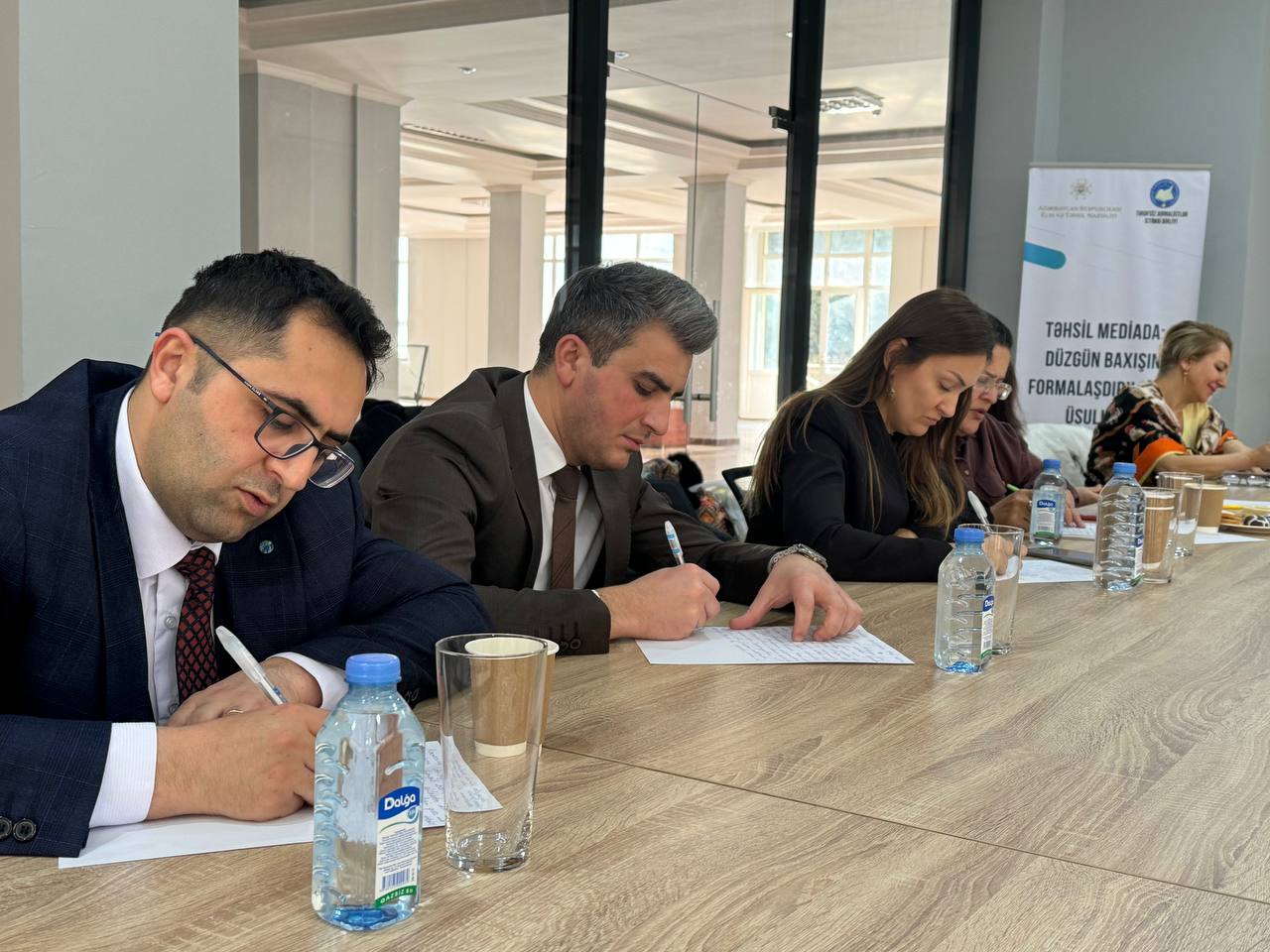 Təlimdə müxtəlif media qurumlarının təhsil mövzusunda xəbərlər hazırlayan əməkdaşları iştirak ediblər.