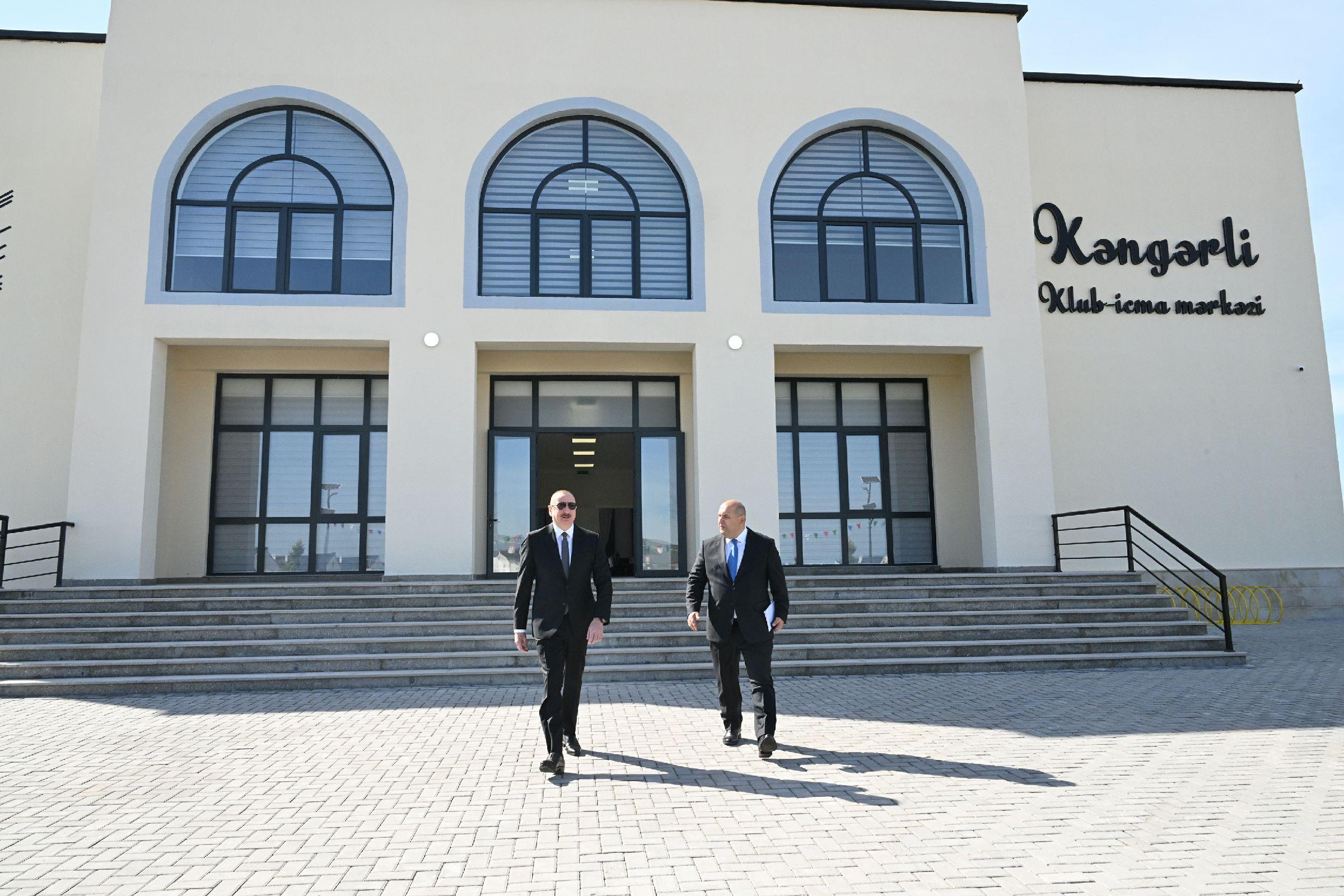 Moderator.az xəbər verir ki, dövlət başçısı burada yerli icra strukturları üçün inşa olunmuş çoxfunksiyalı inzibati binada, klub-icma mərkəzində, Kəngərli kənd tam orta məktəbində, körpələr evi-uşaq bağçasında və yeni inşa edilmiş fərdi evlərdə yaradılan şəraitlə tanış olub.