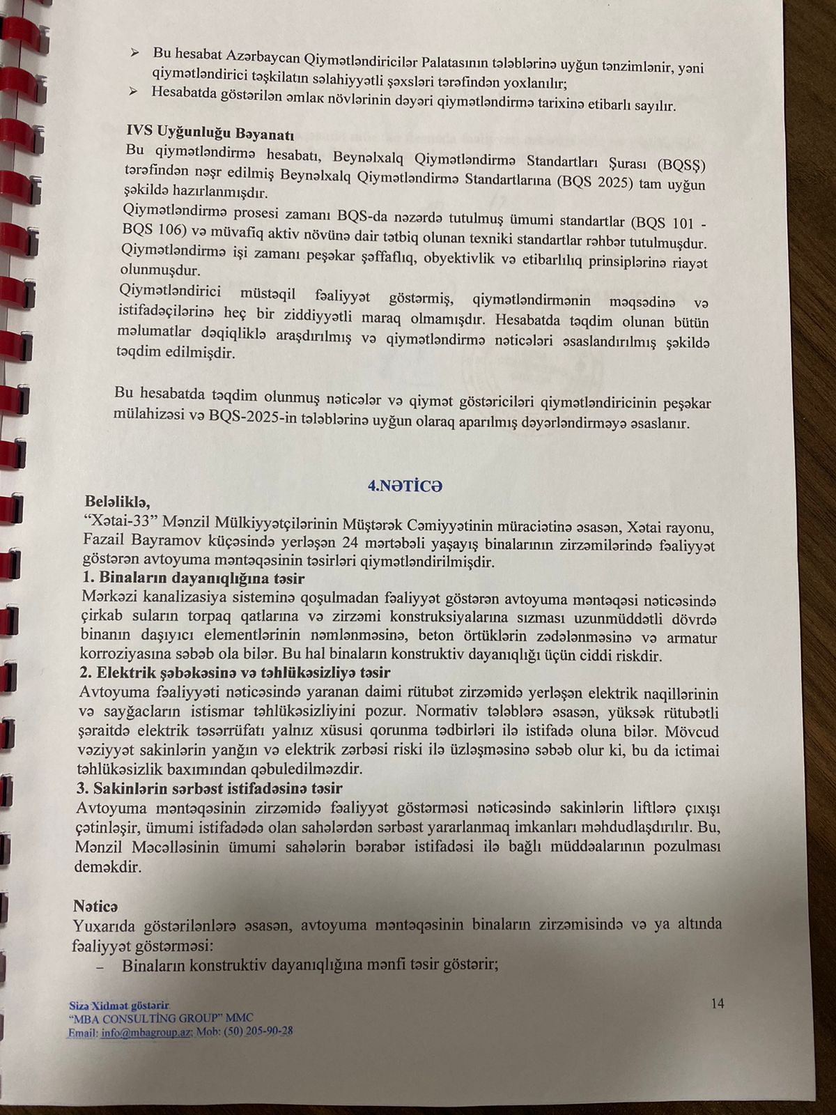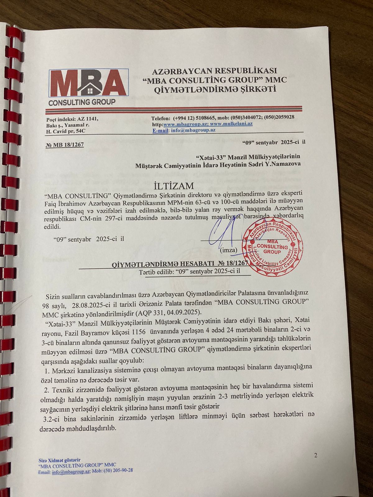 “MBA Consulting Group” qiymətləndirmə şirkətinin 9 sentyabr 2025-ci il tarixli hesabatında göstərilir ki, avtoyuma məntəqəsi: