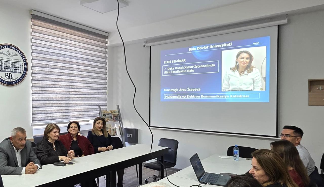 Seminarda kafedranın müəllimləri, doktorantlar, magistrlər və tədqiqatçılar çıxış edərək media sahəsində süni intellektin tətbiqi ilə bağlı müxtəlif praktik nümunələr haqda danışıblar. Seminar iştirakçıları mövzunun aktuallığını qeyd edərək bu istiqamətdə tədqiqatların davam etdirilməsinin vacibliyini vurğulayıblar.