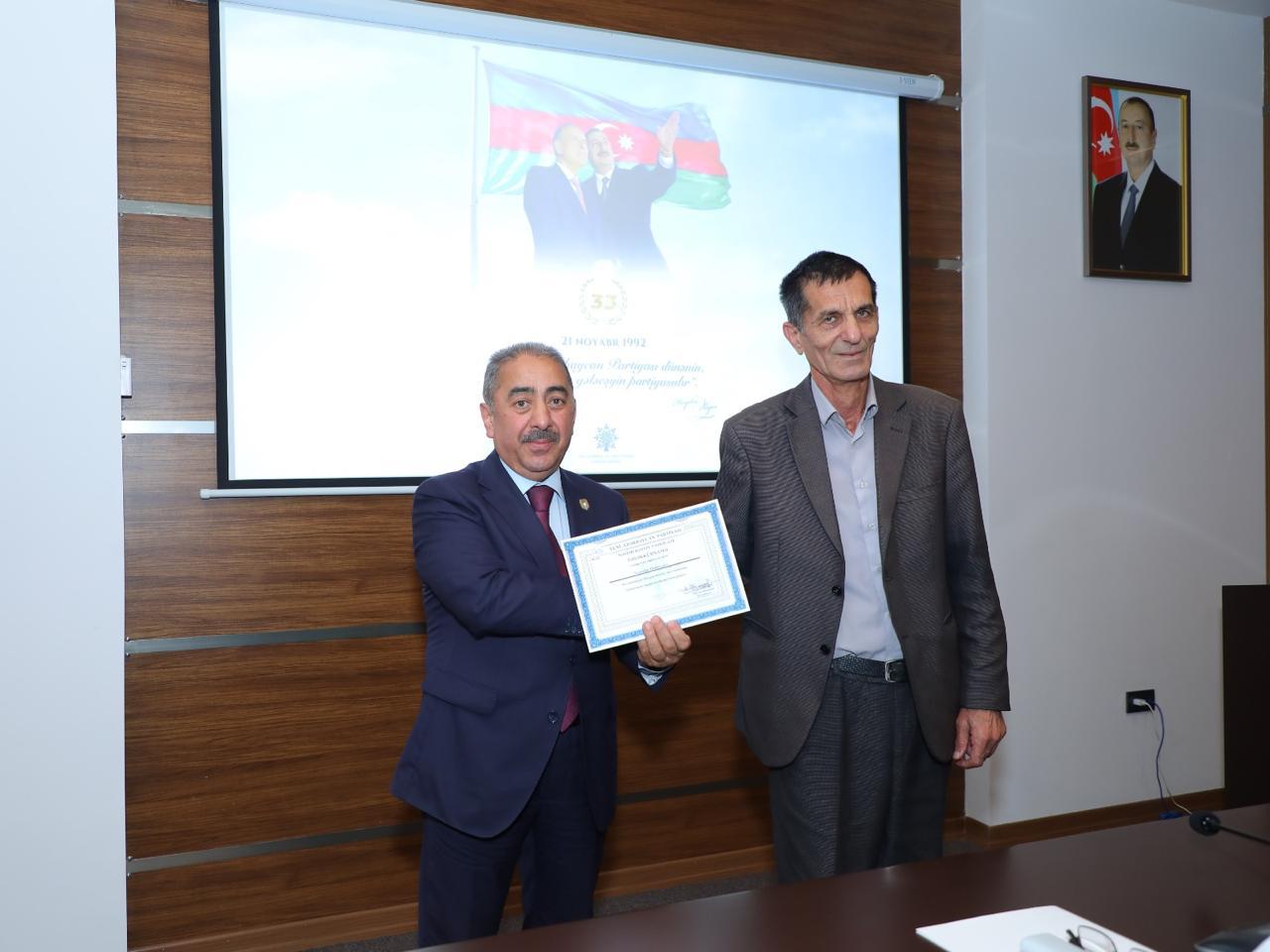 Tədbir Azərbaycan Respublikasının Dövlət Himninin səsləndirilməsi, Ulu Öndər Heydər Əliyevin və ölkəmizin müstəqilliyi,ərazi bütövlüyü, suverenliyi uğrunda canından keçən şəhidlərimizin əziz xatirəsinin bir dəqiqəlik sükutla yad olunması ilə başlayıb. Daha sonra YAP-ın tarixi və inkişaf yolunu əks etdirən videoçarx nümayiş olunub.