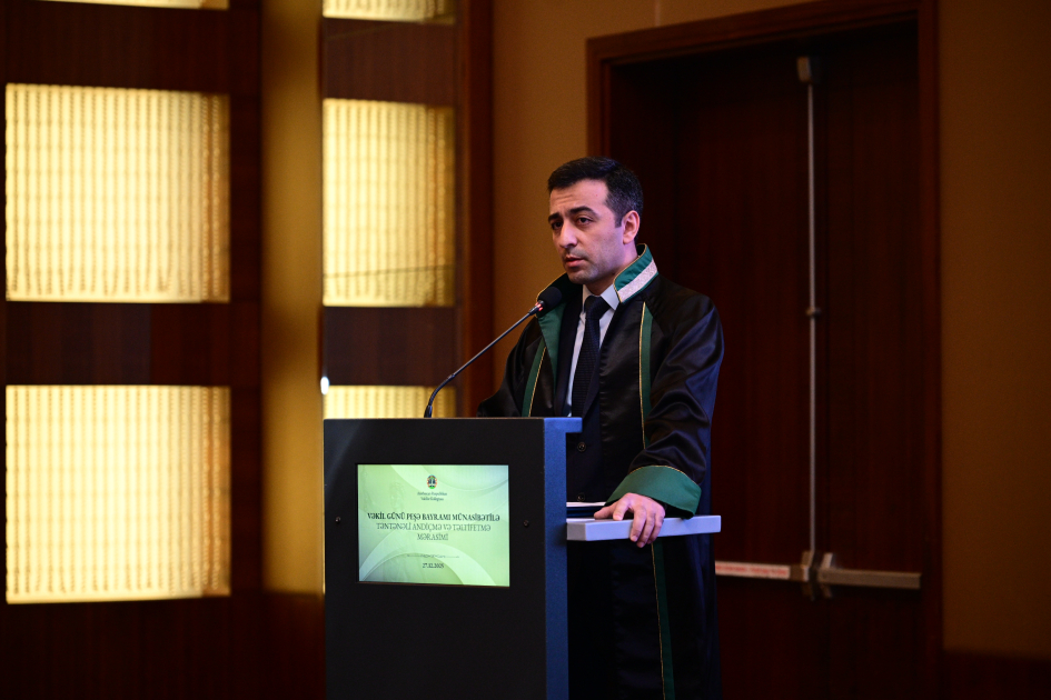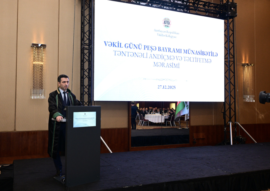 Bu gün 28 Dekabr - Vəkil Günü peşə bayramı münasibətilə Azərbaycan Respublikası Vəkillər Kollegiyasının (VK) üzvlüyünə yeni qəbul olunan vəkillərin təntənəli andiçmə və peşə fəaliyyəti dövründə fərqlənən vəkillərin təltif olunması mərasimi keçirilir.