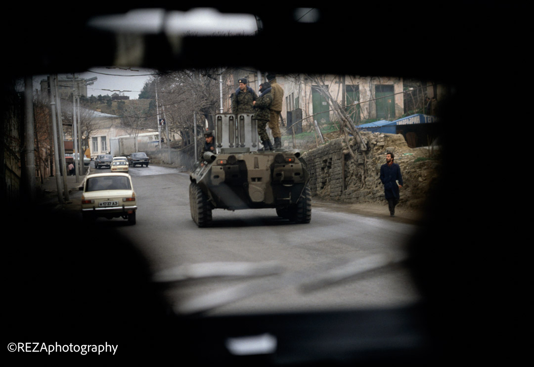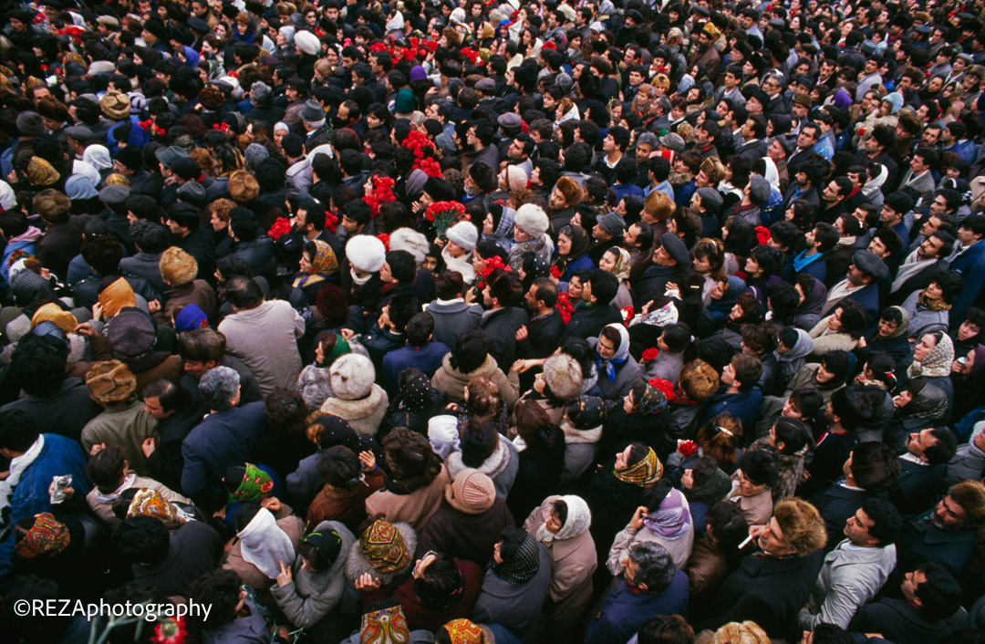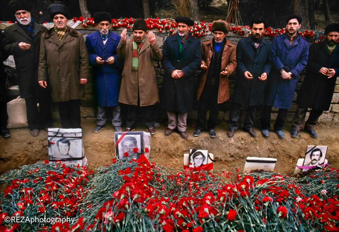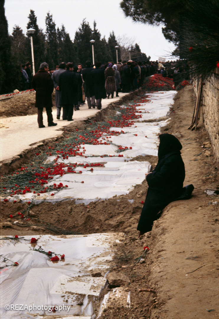 Ordu helikopteri izdihamı dağıtmaq üçün qəbiristanlığın üzərində uçuşlar həyata keçirdiyi zaman isə, artıq Reza bu “qırmızı və qara”-dan ibarət kadrları çəkib bitirmişdi. Təhlükəsizlik tədbirləri səbəbi ilə fotoaparat və avadanlıqlar olmadan Moskvaya qayıdan Reza, sonradan dostlarının köməyi ilə onları əldə edir və ordan da Parisə gedir.