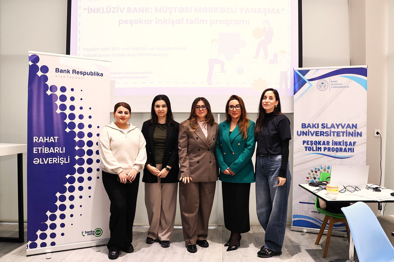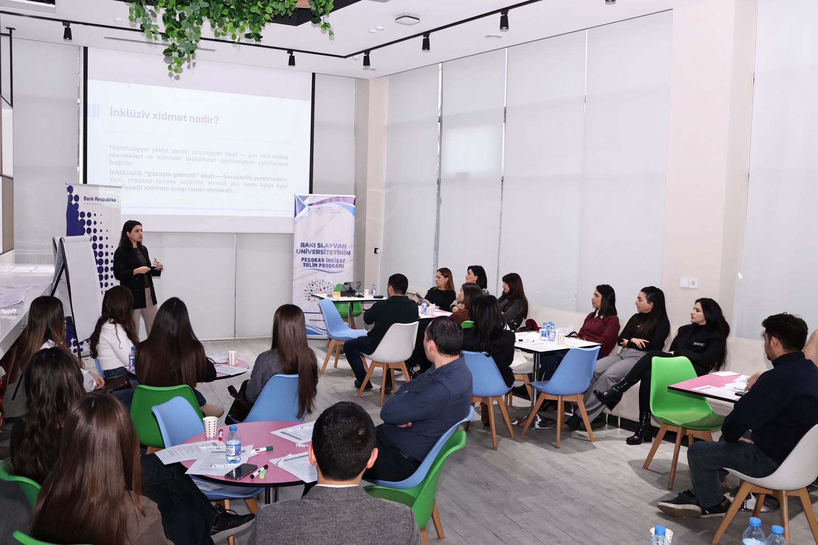 Yanvarın 24-də Bakı Slavyan Universitetinin (BSU) “İnklüziv təhsildən inklüziv cəmiyyətə” layihəsi çərçivəsində Bank Respublikanın rəsmi müraciətinə əsasən bankın Müştəri xidmətləri departamentinin əməkdaşları üçün  “İnklüziv bankçılıq”  peşəkar  təlim proqramı təşkil olunub.