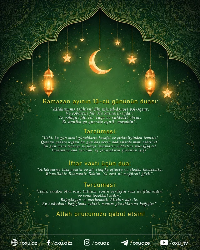 Allah orucunuzu qəbul eləsin!