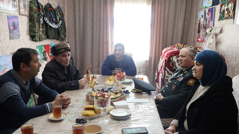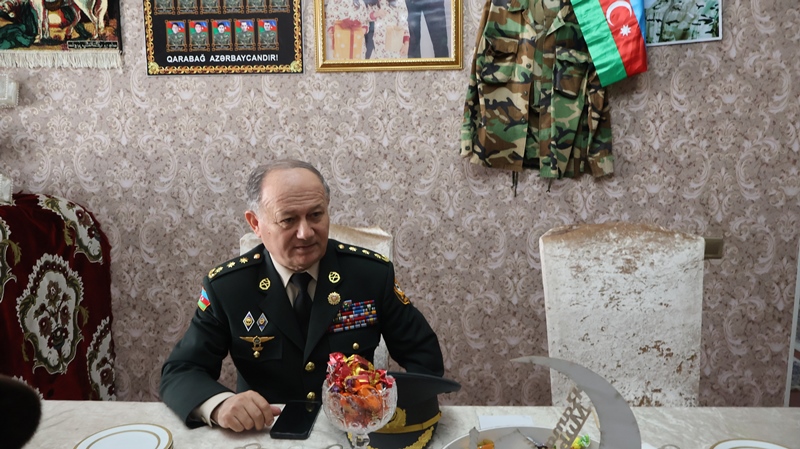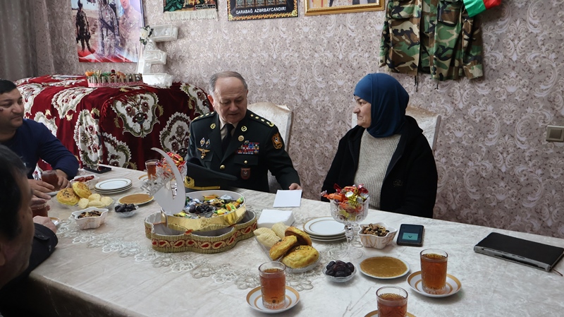 Polkovnik Cəlil Xəlilov Şabranda şəhid Elvin İsgəndərovun ailəsini ziyarət edb