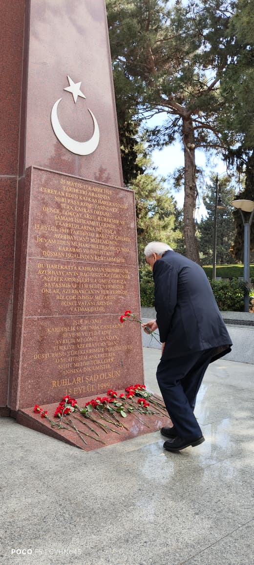 Ziyarətçilər "Türk şəhidliyi" abidəsi önündə gül-çiçək dəstələri düzdülər.