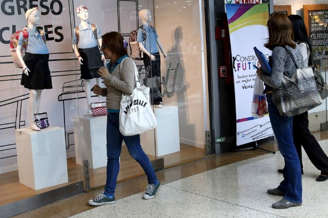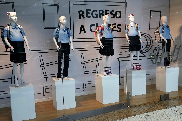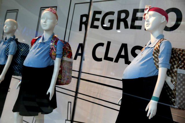 Venesuelanın paytaxtı Karakas şəhərində ticarət mərkəzlərinin birində uşaq paltarları mağazasında hamilə məktəbliləri əks etdirən manikenlər yerləşdirilib.