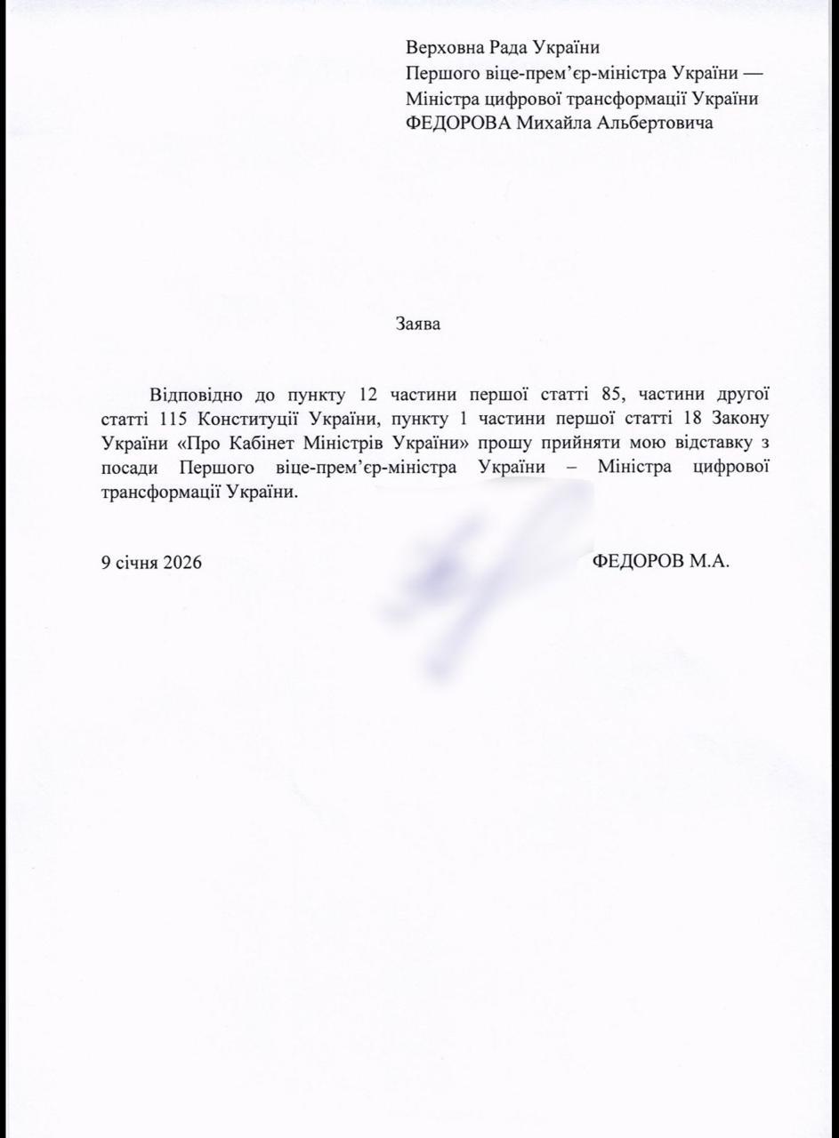 Ukraynada müdafiə naziri Denis Şmıqal və rəqəmsal transformasiya naziri Mixail Fedorov istefalarını Ali Radaya təqdim ediblər.