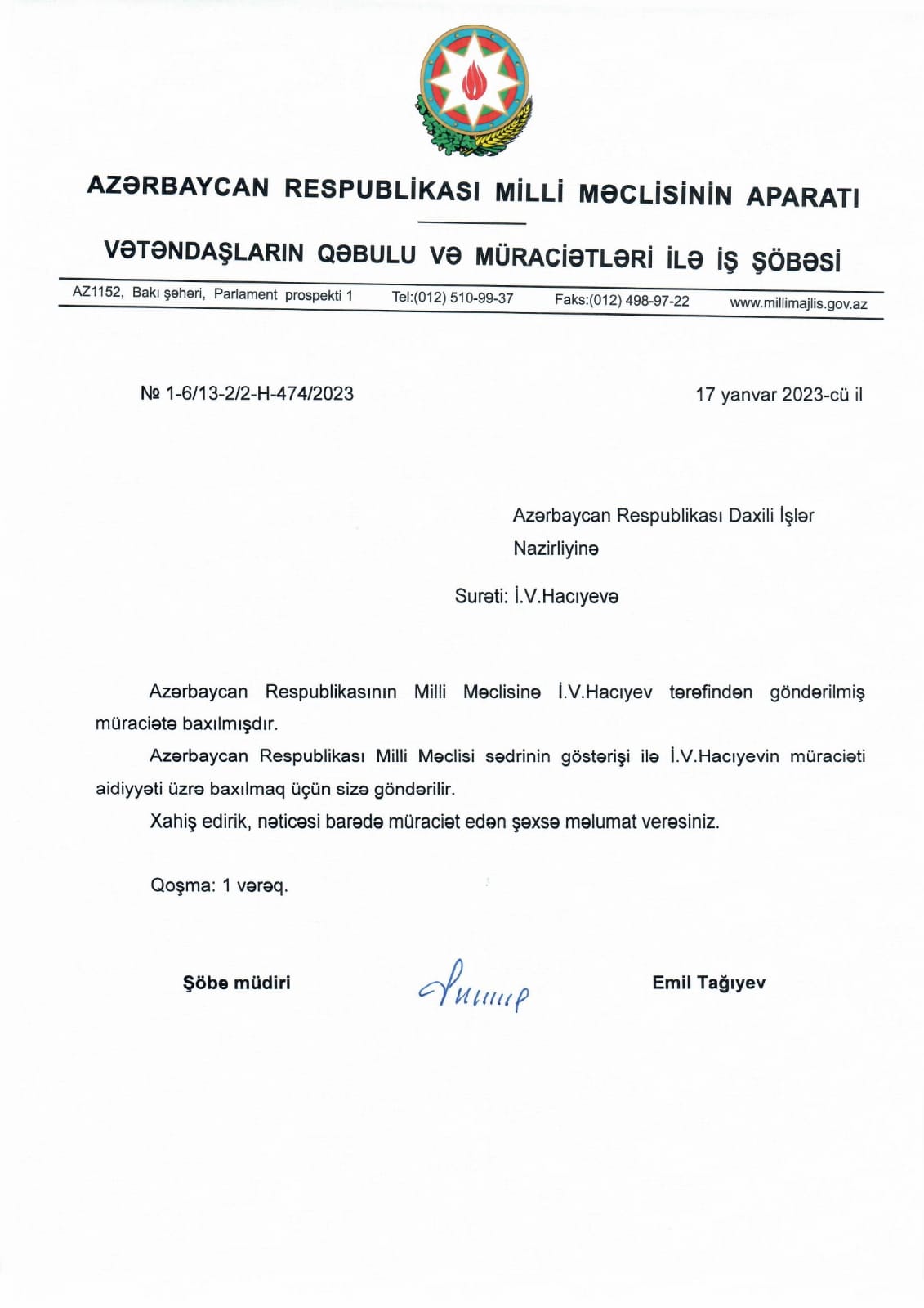 Naxçıvan Muxtar Respublikasının yeni rəhbəri Fuad Nəcəfliyə şikayət ərizəsi yazıb göndərmişəm poçt vasitəsilə, 23.12.2022 tarixdə, gedib çatmır, görünür Ali Məclisdə it bata salırlar.