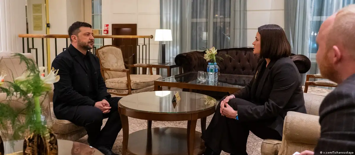 Tixanovskaya Zelenskiyə "demokratik Belarusun dəstəyinə görə" təşəkkür edib və xüsusilə "Ukraynaya həmrəylik və dəstəyə görə qanunsuz məhkum edilmiş belaruslu könüllüləri" xatırladıb.