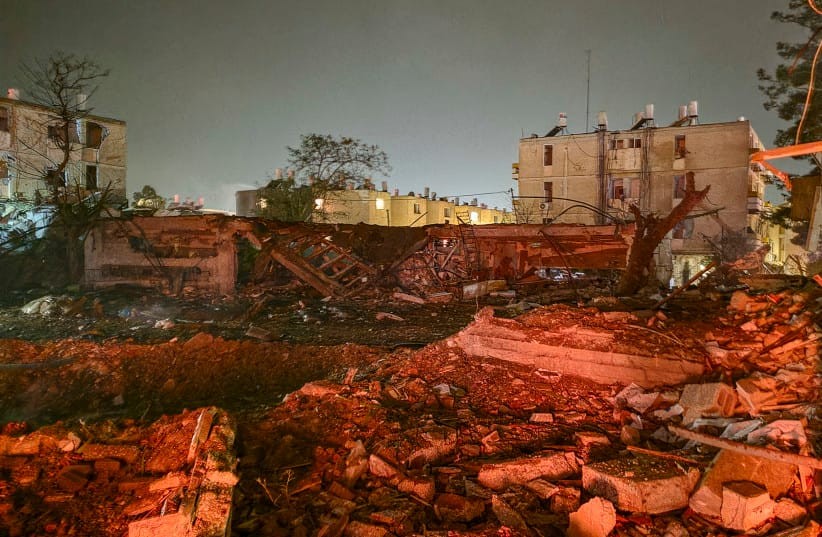 21 mart 2026-cı il tarixində İrandan İsrailin cənubuna atılan raketin Dimona şəhərində yaşayış binasına vurduğu zərbənin nəticələri. (şəkil: Adiel Algi/Flash90)
