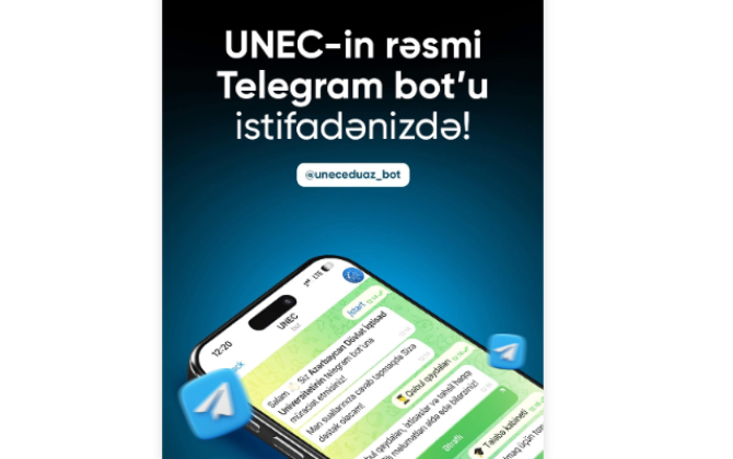 Telegramda @UNEC_Bot ünvanına daxil olaraq suallarınıza asanlıqla cavab tapın və UNEC-in rəqəmsal xidmətlərindən sürətli şəkildə faydalanın!