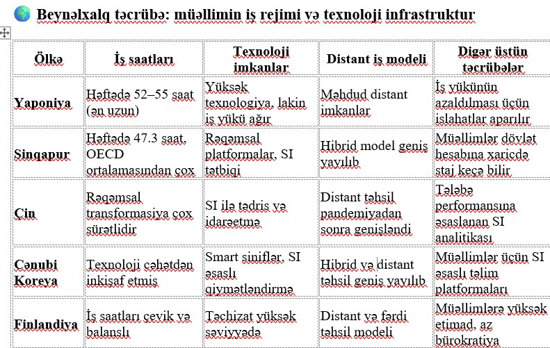 Amma süni intellect erasında Azərbaycan məktəblərində müəllimlərin 9:00–18:00 rejimində işləməsi ideyası, dünya təcrübəsi və süni intellekt dövrünün tələbləri ilə müqayisədə səmərəlilik baxımından ciddi suallar doğurur. Ən qabaqcıl ölkələrin təcrübəsi göstərir ki, uzun saatlar məktəbdə qalmaq deyil, çevik və texnologiya əsaslı iş modeli daha effektivdir. Texnologiyaya bələd müəllim üçün sərhəd yoxdur, sabah ABŞ-da dərsini versin, gündüz Yaponiyaya keçsin, axşam isə Finlandiyada və ya Avstraliyaya yollansın. Əsas problem müəllimlərin texnologiyayaya nə qədər sahib çıxa bilməsindədir. Burada isə hələ də böyük  problemlər var. Müəllimlərin xeyli hissəsi nəinki orta məktəblərdə, hətta universitetlərdə (rəhbər kadrlar daxil) müasir süni intellect dövrünün əlifbası olan kompyüterdən istifadə bacarığına malik deyil, kompyüter dillərini isə heç bir-iki faizi də bilmir. Kompyüterdən istifadə edə bilməyən müəllimin, professorun təhsil ocağında nə işi var? Azərbaycan dilinin əlifbasını bilməyən bir şəxsə Azərbaycan dilini öyrətməyi necə etibar etmək olar (eyni oxşar hadisədir). Nə qədər parodaksal görünsə də belə hallar Azərbaycanda on minlərlədir.