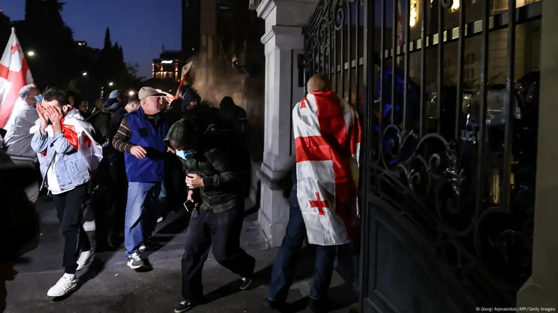 Bir qrup etirazçı Orbeliani sarayına yürüş edib, digərləri isə mitinqi tərk etməyə başlayıb. Polis gözyaşardıcı qaz və su şırnaqları tətbiq edərək hücum cəhdini dağıdıb. Toqquşmalar nəticəsində barrikadalar qurulub, küçələrdə yanğınlar törədilib. Səhiyyə Nazirliyi 6 nümayişçinin və 21 polisin xəsarət aldığını bildirib.