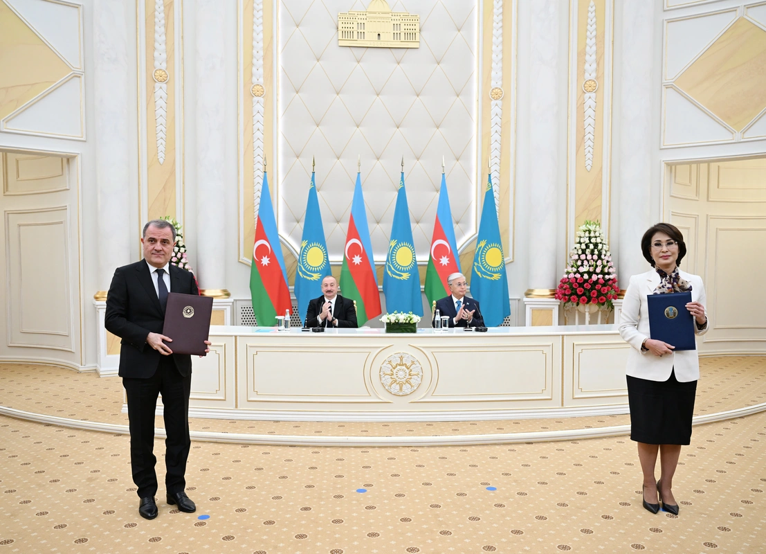 Sonra Azərbaycan-Qazaxıstan sənədləri mübadilə olunub.