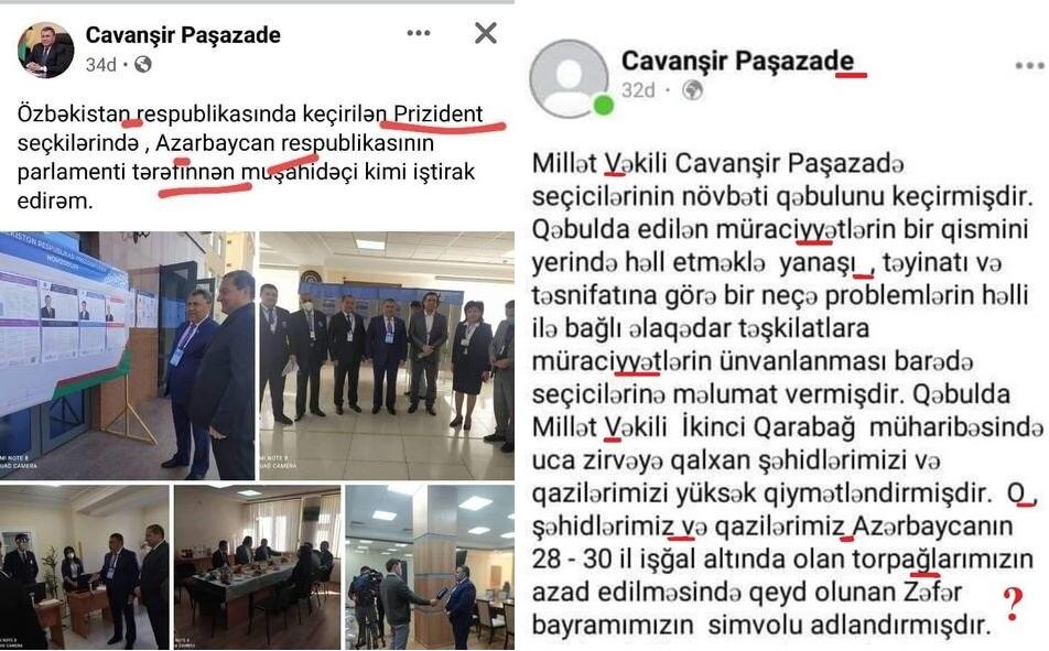 Deputat cəmi bir cümlədən ibarət olan paylaşımında “prezident” sözünü “prizident”, “tərəfindən” əvəzinə “tərəfinnən”, “müşahidəçi” sözünü “muşahidəçi”, “Azərbaycan” sözünü “Azarbaycan” olaraq qeyd etmişdi. Əsl C.Paşazadə əlbəttə ki, bu idi. Yuxarıda qeyd etdiyimiz son paylaşımı isə hansısa köməkçisi edib.