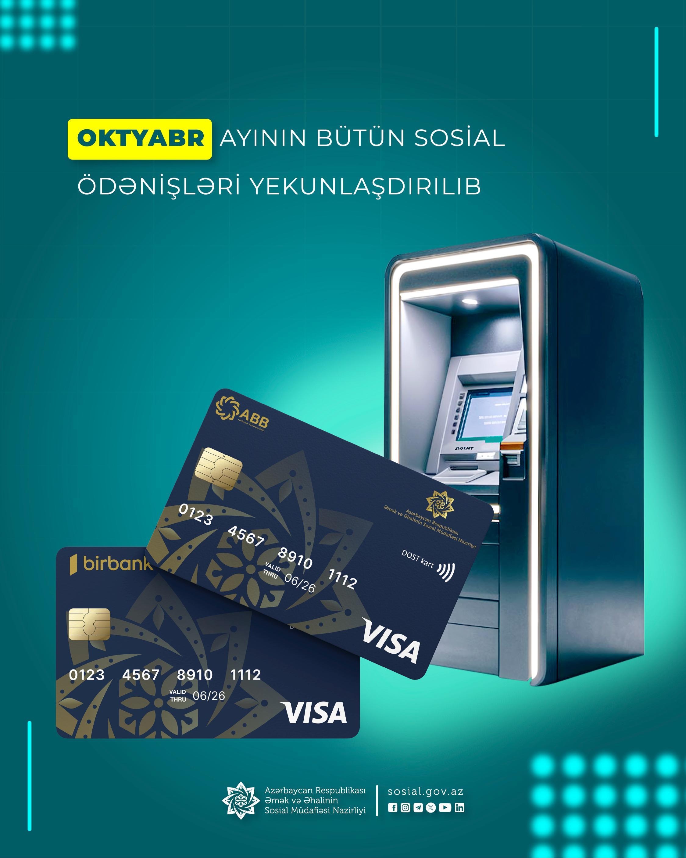 Əmək və Əhalinin Sosial Müdafiəsi Nazirliyinin tabeliyində Dövlət Sosial Müdafiə Fondu tərəfindən oktyabr ayının bütün sosial ödənişləri başa çatdırılıb.