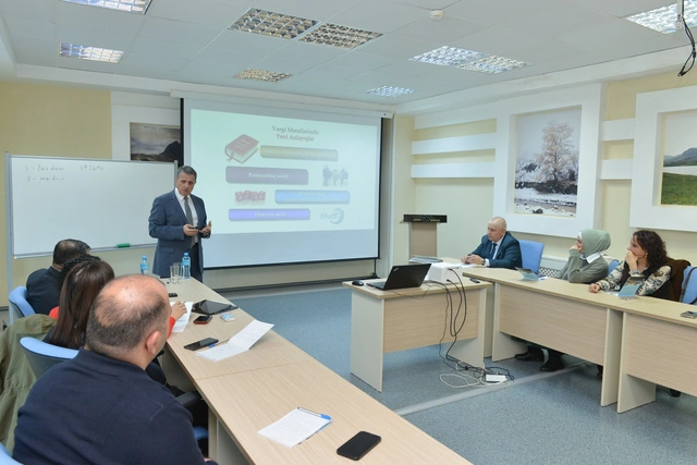 Moderator.az xəbər verir ki, təlim çərçivəsində Tədris Mərkəzinin şöbə rəisi İmran Qarayev və Vergi Siyasəti Baş İdarəsinin şöbə rəisi Niyaz Şükürov tərəfindən təqdimatlar keçirilib.