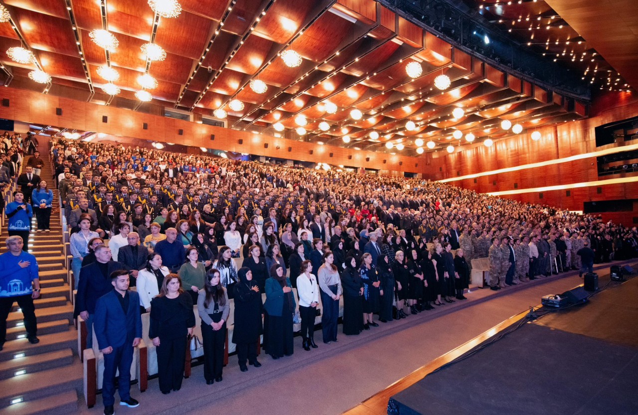 Moderator.az xəbər verir ki, Dövlət Himninin səsləndirilməsi, Vətən uğrunda şəhid olmuş qəhrəmanlarımızın əziz xatirəsinin bir dəqiqəlik sükutla yad edilməsi ilə başlayan tədbirdə dövlət və hökumət rəsmiləri, millət vəkilləri, şəhid ailələri və qazilər, ziyalılar, gənclər təşkilatlarının təmsilçiləri, könüllülər, tələbə gənclər, ictimaiyyət və media nümayəndələri olmaqla 2000-nə yaxın şəxs iştirak edib.