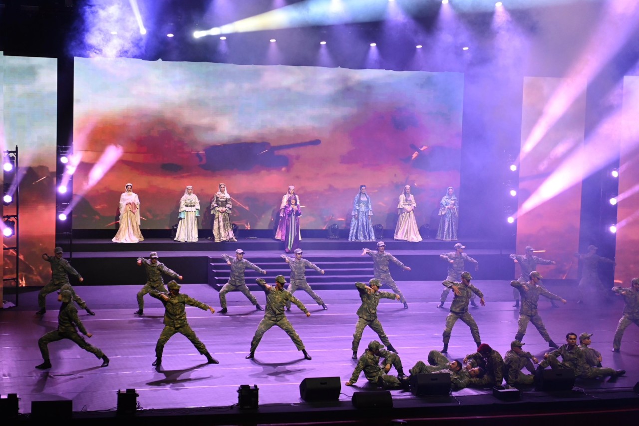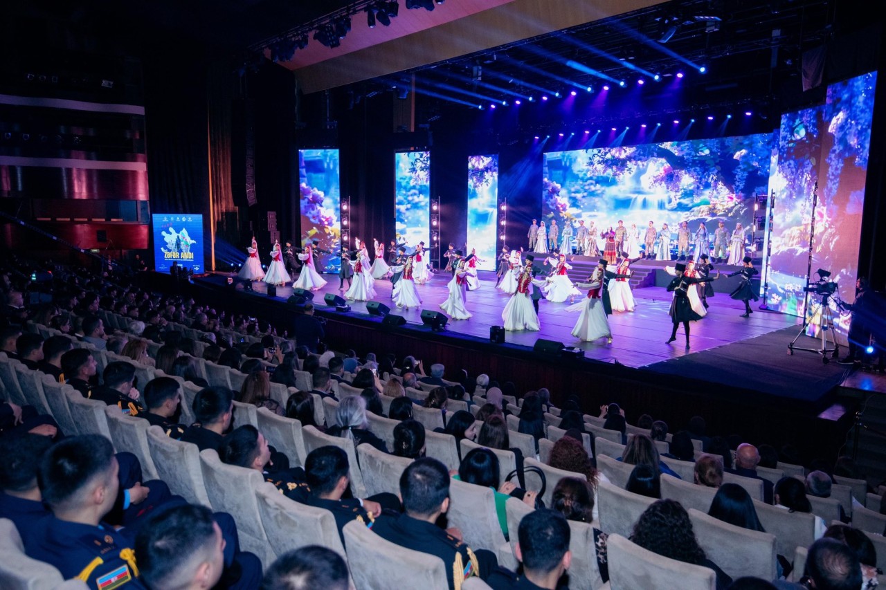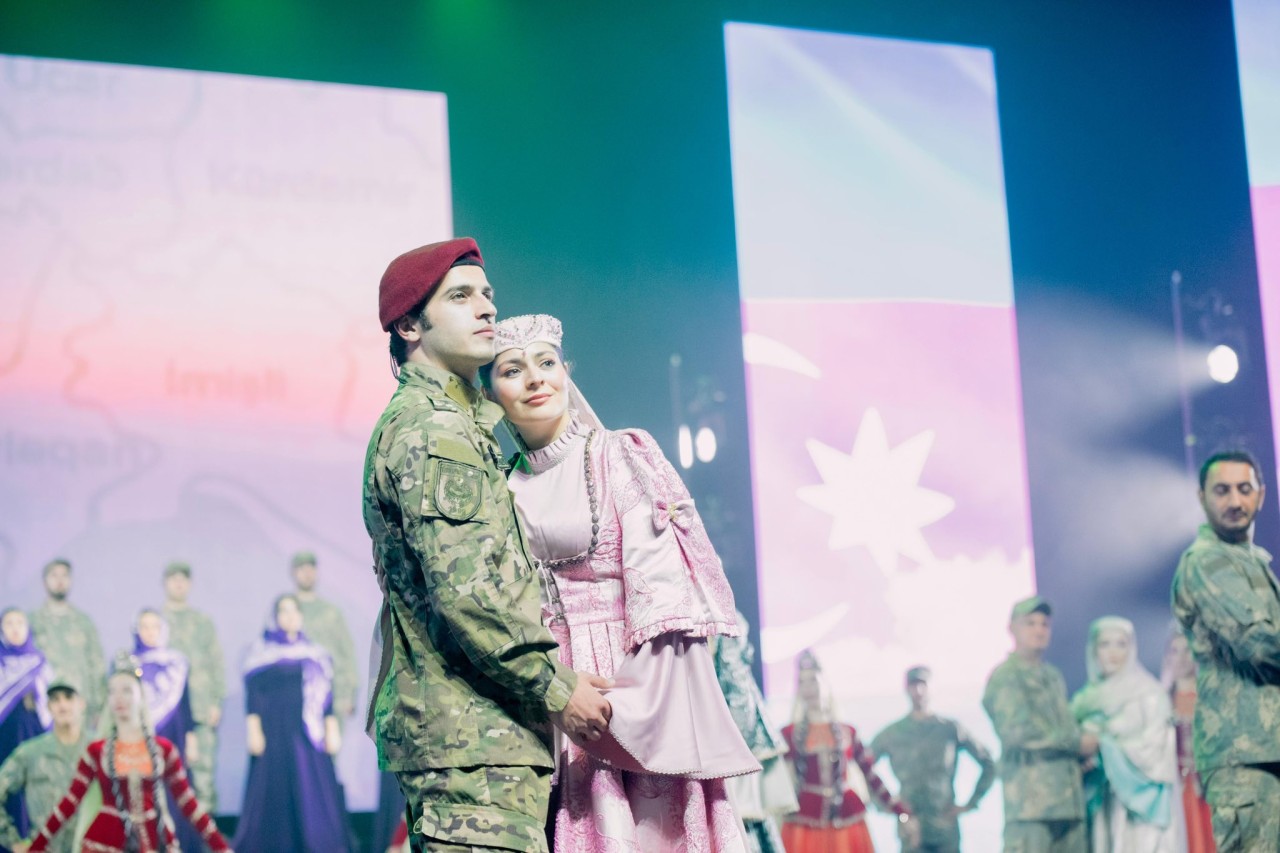Həmçinin çıxışlarda qəhrəmanlıq tariximizin gənclər arasında təbliğ edilməsi, gənclərə, yetişməkdə olan gənc nəsilə öz qanları və canları bahasına tarix yazan igid Vətən övladlarının tanıdılması üçün bu kimi tədbirlərin keçirilməsinin xüsusi əhəmiyyəti vurğulanıb. Tədbir tanınmış incəsənət xadimlərinin və istedadlı gənclərin təqdimatında “Zəfər Andı” bədii kompozisiyası ilə davam edib. Quruluşçu rejisoru Əməkdar artist Nicat Kazımov, ssenari müəllifi şair, yazıçı, kinodramaturq İlqar Fəhmi olan kompozisiyada Azərbaycan xalqının qəhrəman övladlarının Vətənin azadlığı uğrunda göstərdikləri şücaət və qəhrəmanlıqlar, Vətən Müharibəsi və antiterror əməliyyatlarını əhatə edən vacib hadisələr bədii, musiqili və teatral formada tamaşaçılara təqdim edilib.