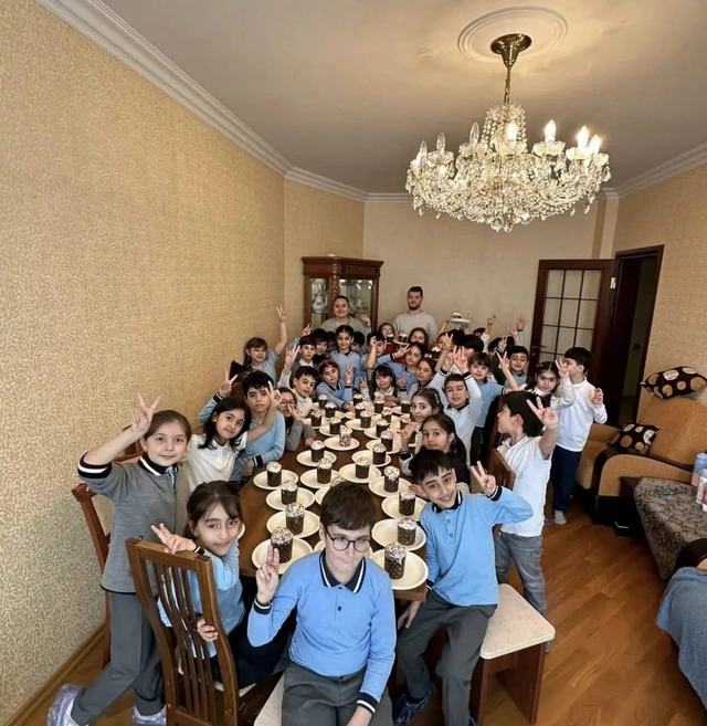 Daha sonra müəllim Nigar Vaqifovna 189-190 nömrəli məktəbdəki sinfi üçün təxminən 50 kuliç sifariş etdi. Uşaqlar bizi sevinclə qarşıladılar, dərhal kuliçləri yeməyə başladılar. Onların təbəssümünü görmək çox xoş idi.
