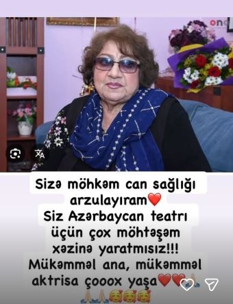 "Sizə möhkəm can sağlığı arzulayıram. Siz Azərbaycan teatrı üçün çox möhtəşəm xəzinə yaratmısınız. Mükəmməl ana, aktrisa, çox yaşa" deyə, aktrisa yazıb.