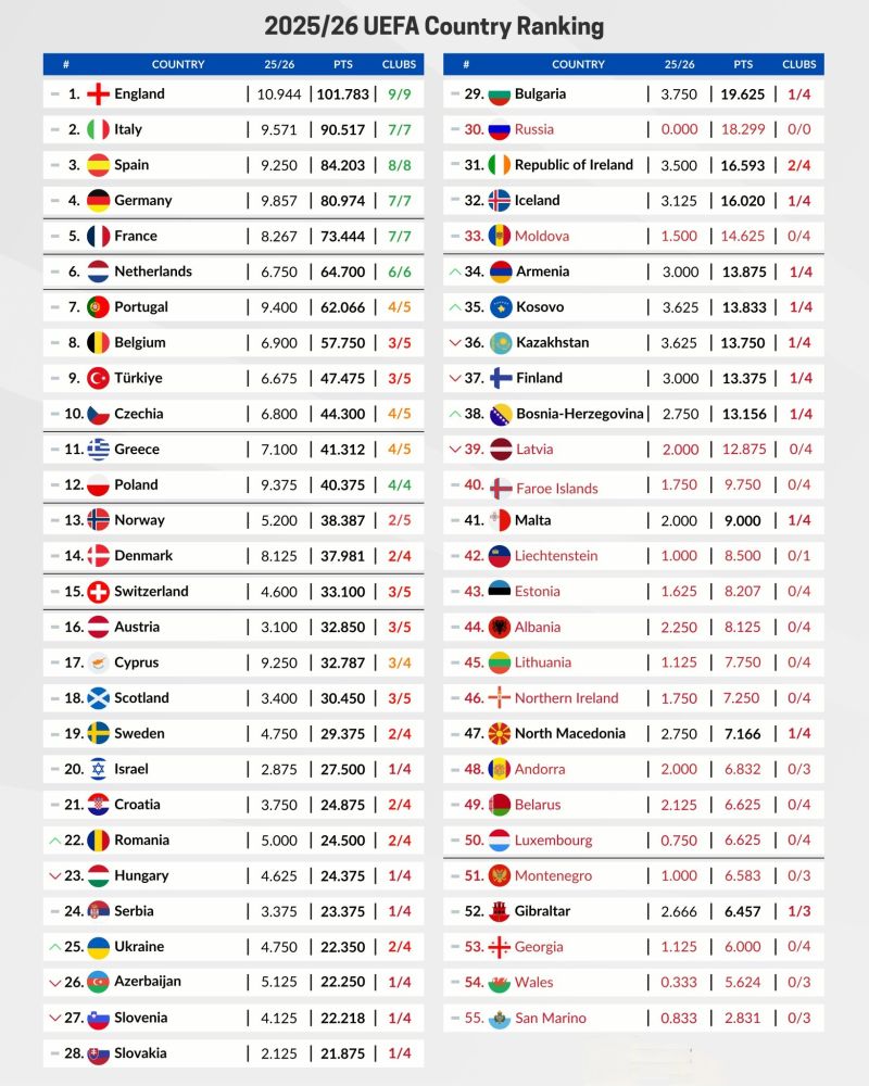 Moderator.az Offsideplus.az-a istinadla xəbər verir ki, son yenilənməyə əsasən, bir neçə ölkə öz mövqeyini yaxşılaşdıraraq rəqiblərini geridə qoyub.
