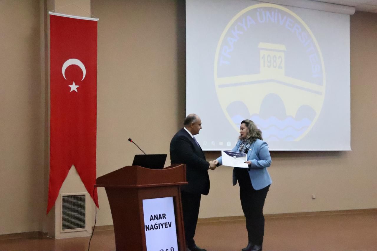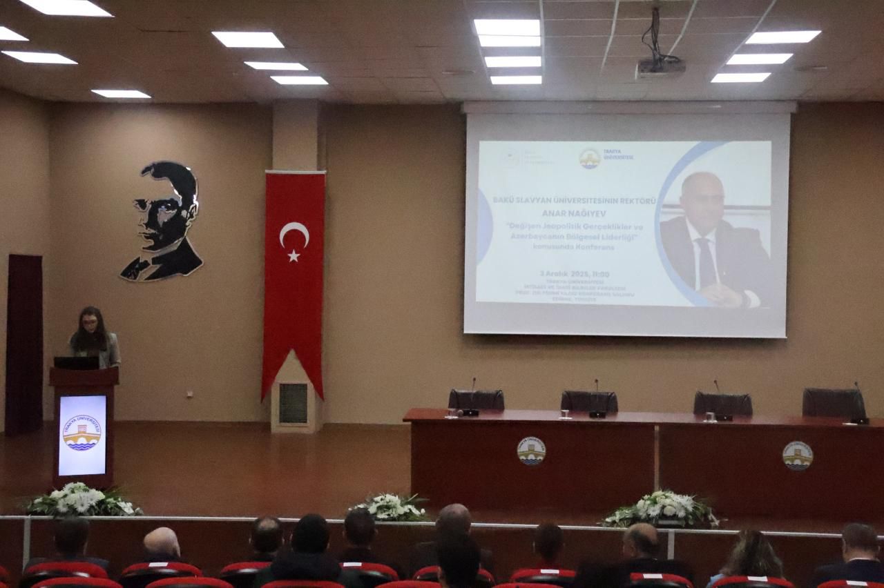 Dekabrın 3-də Türkiyə Respublikasının Ədirnə şəhərində yerləşən Trakya Universitetində prorektorların, dekanların, İqtisadi və idarəetmə elmlər fakültəsinin professor-müəllim heyəti və tələbələrin iştirakı ilə keçirilən tədbirdə Bakı Slavyan Universitetinin (BSU) rektoru Anar Nağıyev “Dəyişən geosiyasi reallıqlar və Azərbaycanın regional liderliyi” mövzusunda çıxış edib.