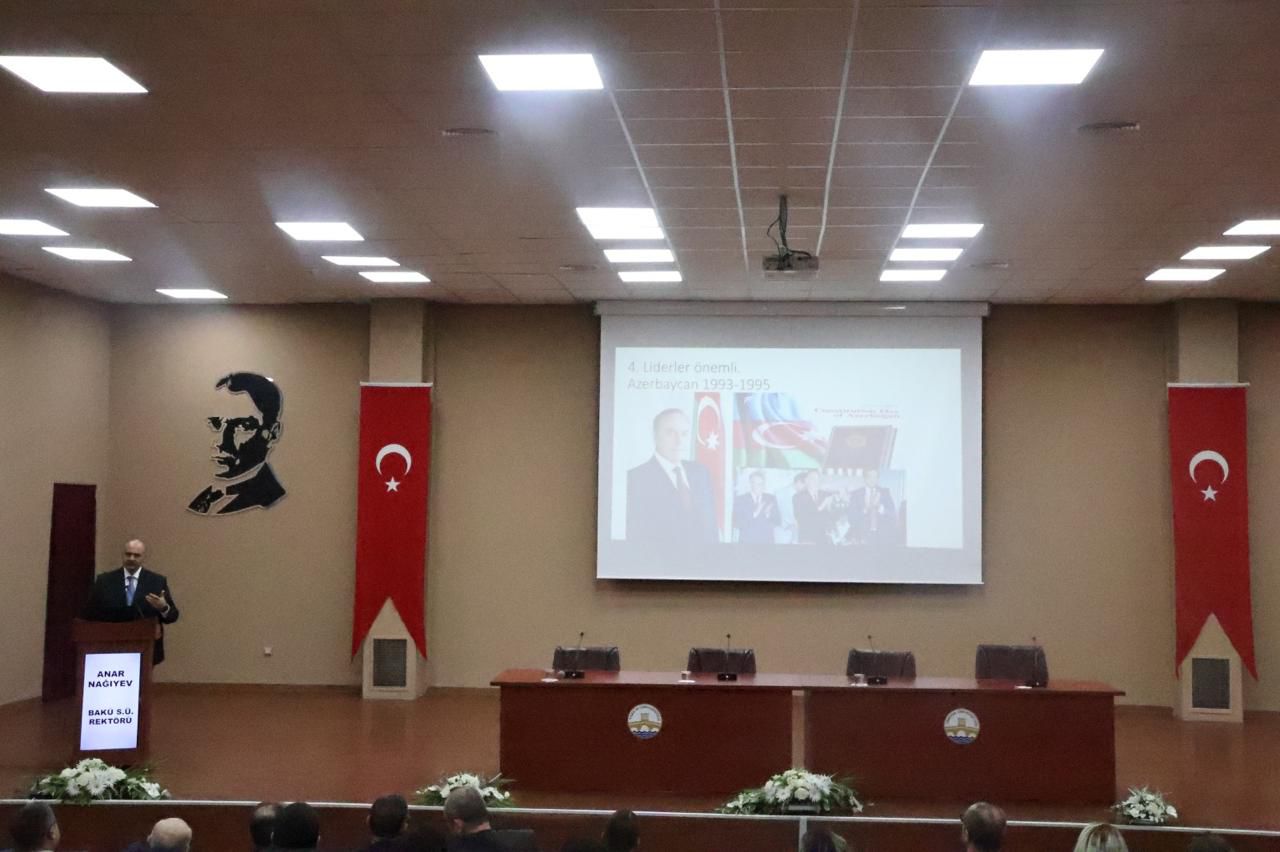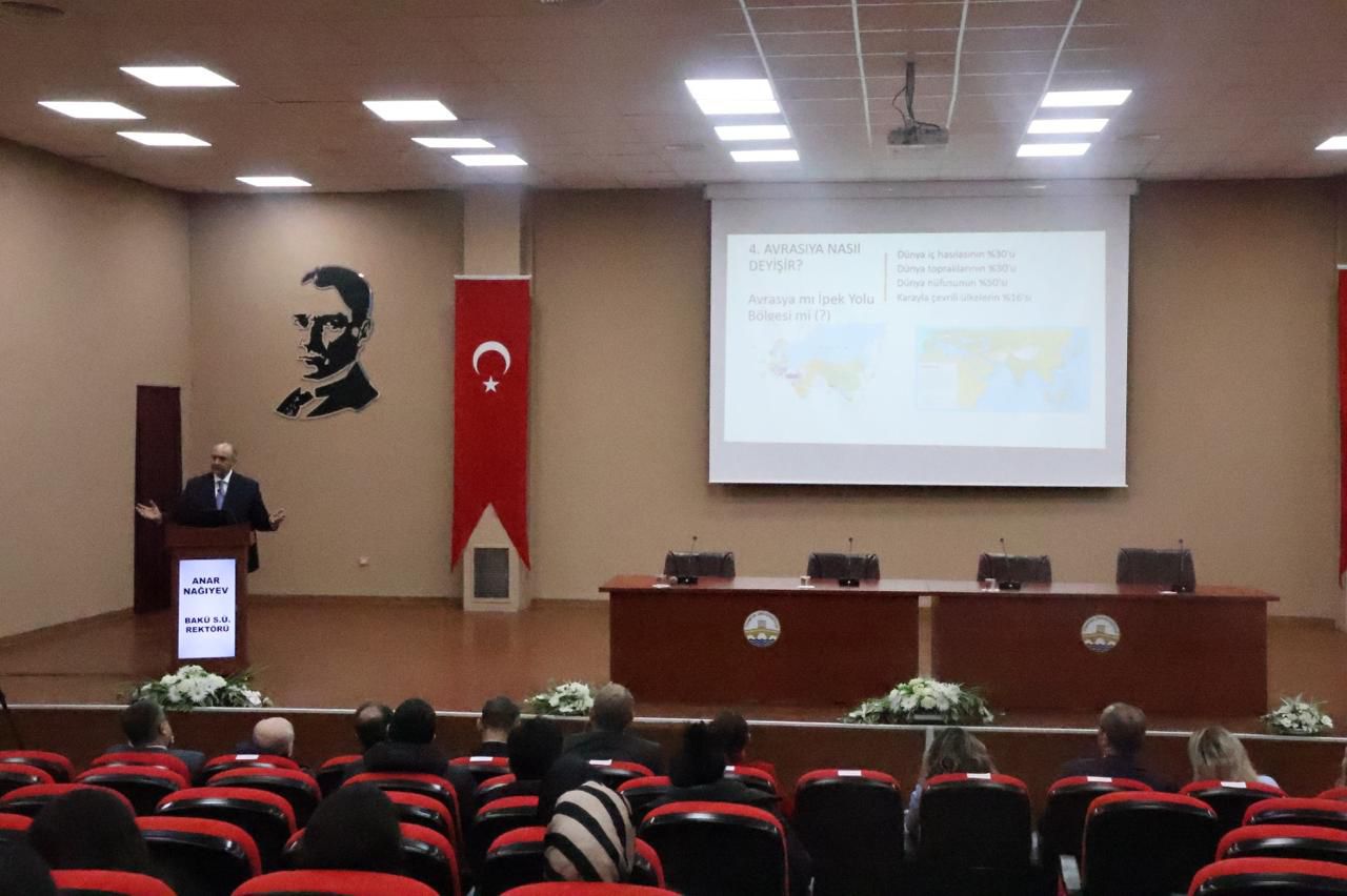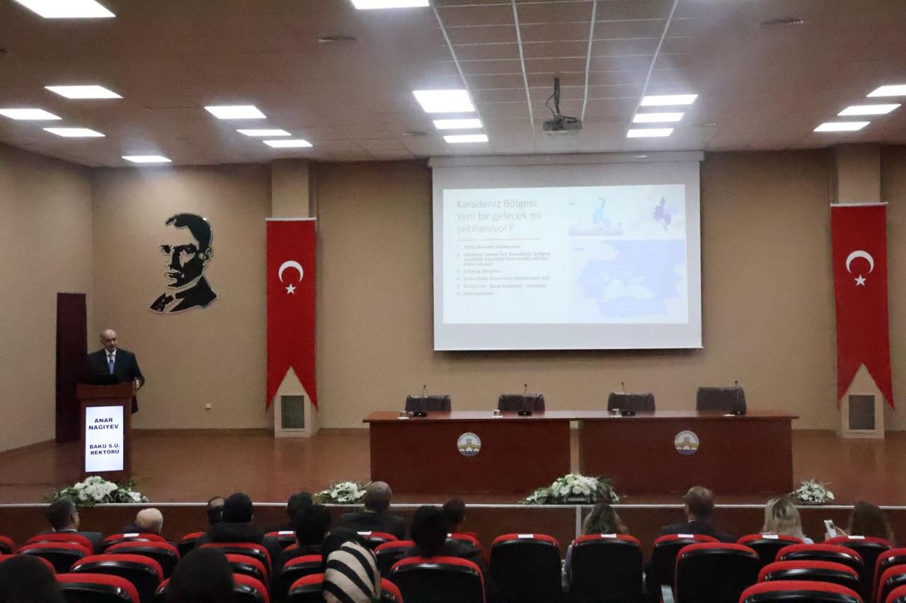 Türkiyənin geosiyasi mövqeyinə də toxunan rektor bu ölkənin Qərb, Avropa, Yaxın Şərq və Türk Dünyası ilə əlaqələrinin strateji əhəmiyyətini qeyd edib. Prezident İlham Əliyevin 14 fevral 2024-cü il andiçmə mərasimindəki çıxışına istinad edərək Türk Dövlətləri arasında birliyin və inteqrasiyanın güclənməsinin Azərbaycan üçün önəmini diqqətə çatdırıb.