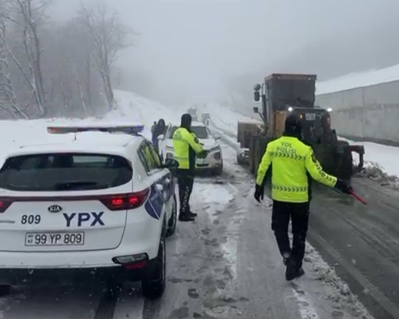 Qarlı hava ilə əlaqədar yollarda təhlükəsizlik tədbirləri gücləndirilib - FOTOLAR
