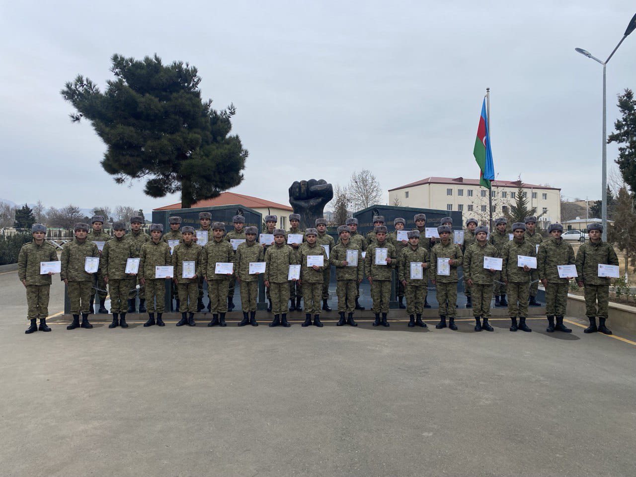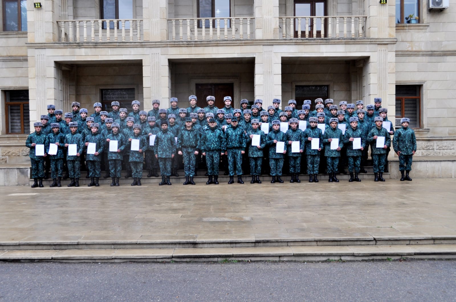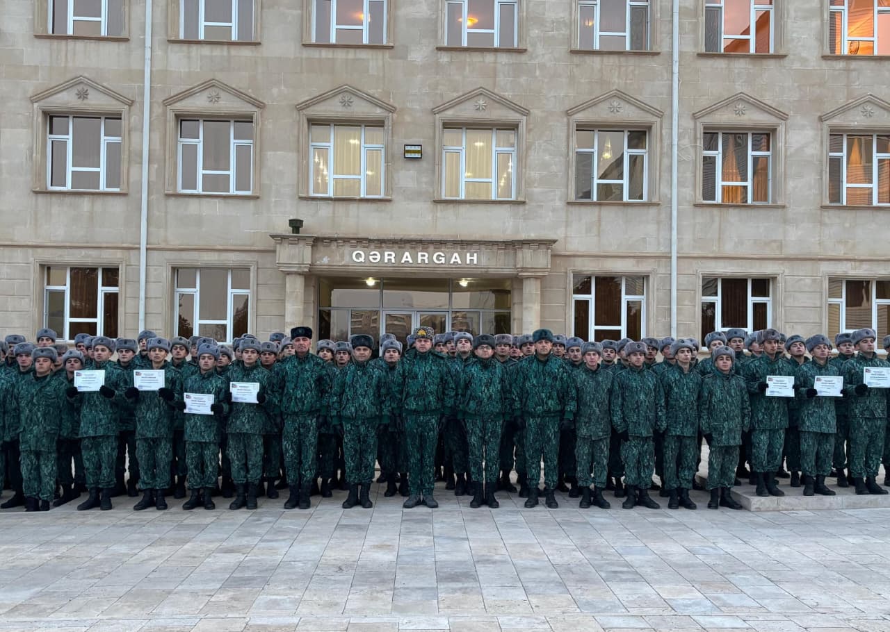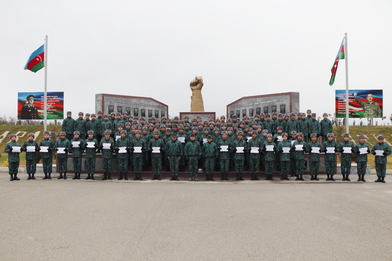 “Vətənə xidmət şərəfdir!” şüarı altında hərbi xidmətlərini başa vuraraq Azərbaycan Respublikası Silahlı Qüvvələrinin ehtiyatına buraxılan müddətli həqiqi hərbi xidmət hərbi qulluqçularına vəzifələrini şərəflə yerinə yetirdiklərinə görə təşəkkür edilib.