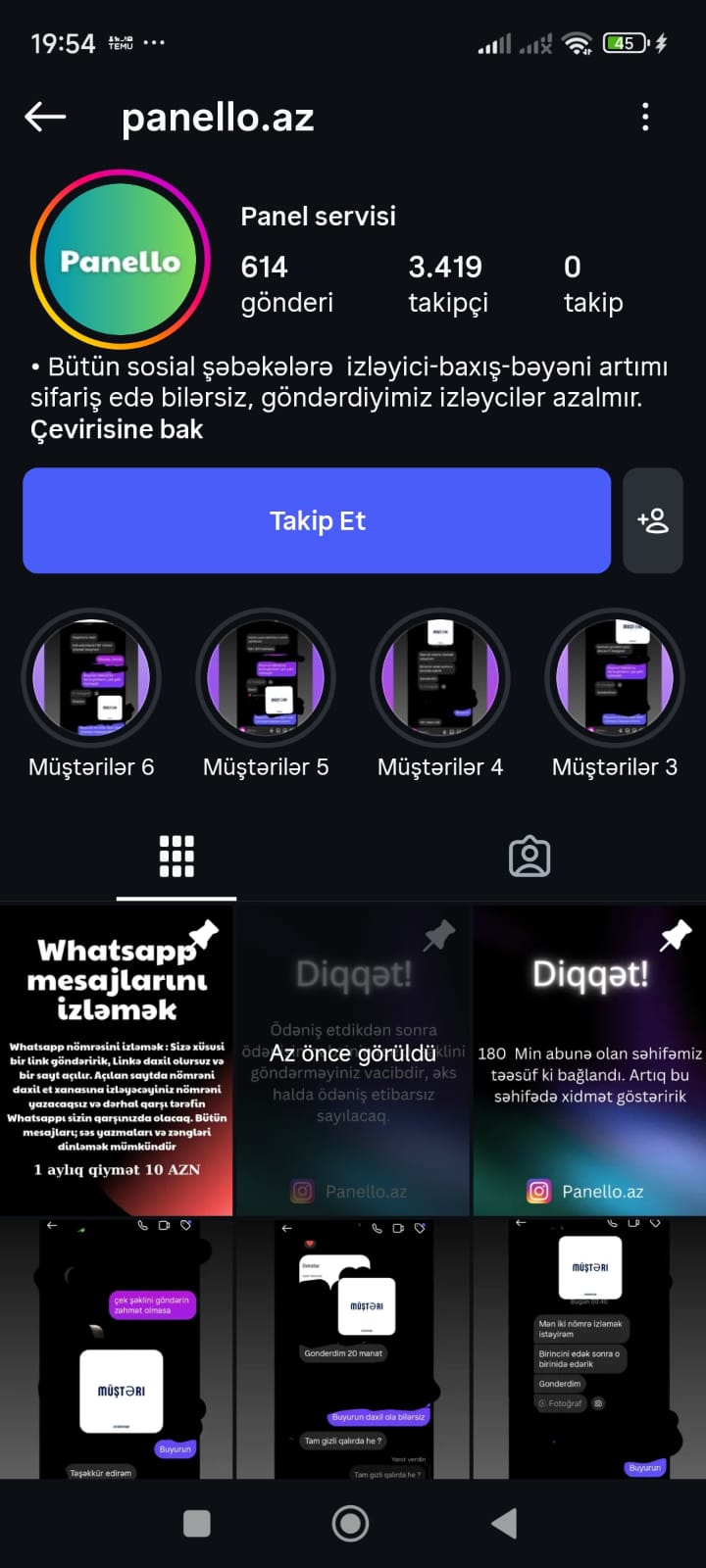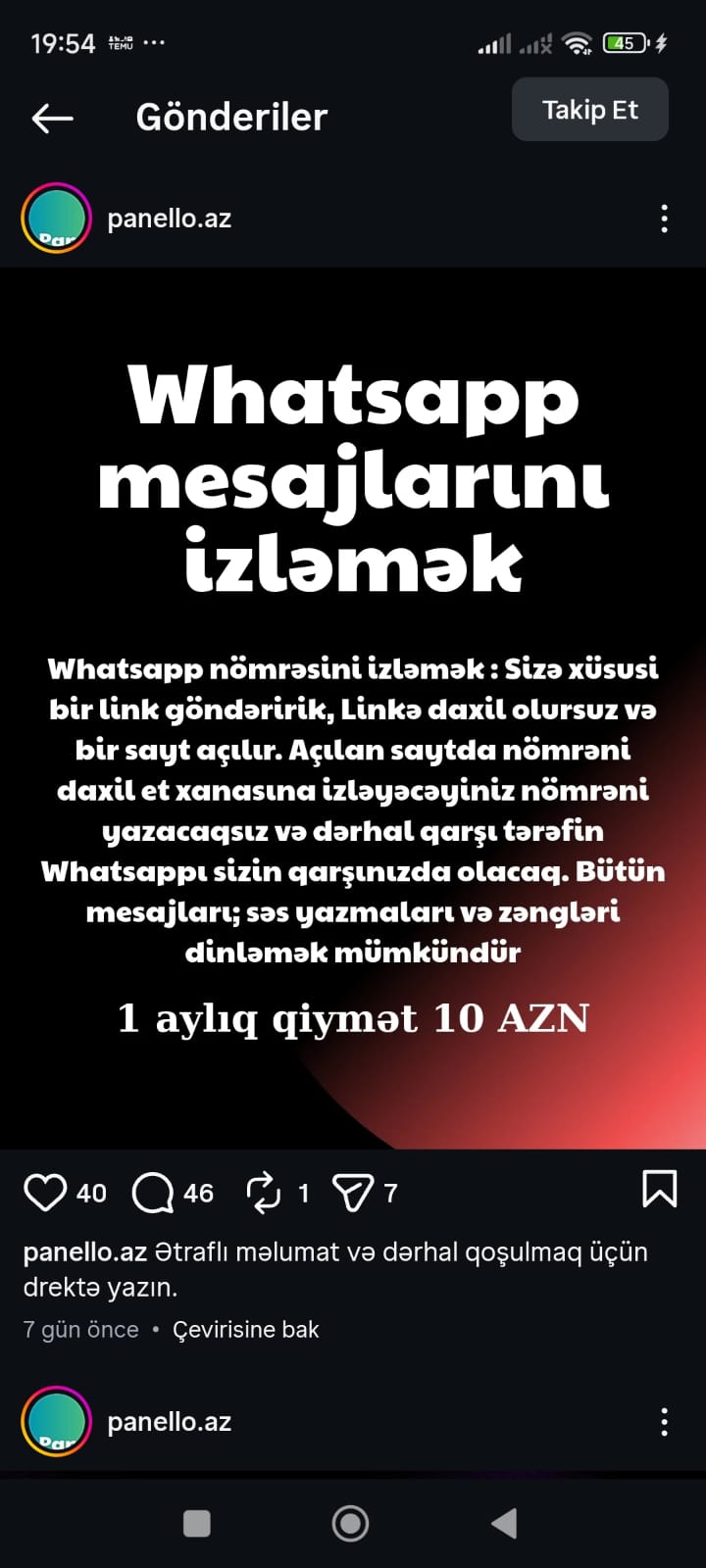 Son günlər “Instagram” sosial şəbəkəsində fəaliyyət göstərən bəzi səhifələr istifadəçilərə “10 manat qarşılığında istənilən nömrənin WhatsApp yazışmalarını izləmək” xidməti təklif edir.