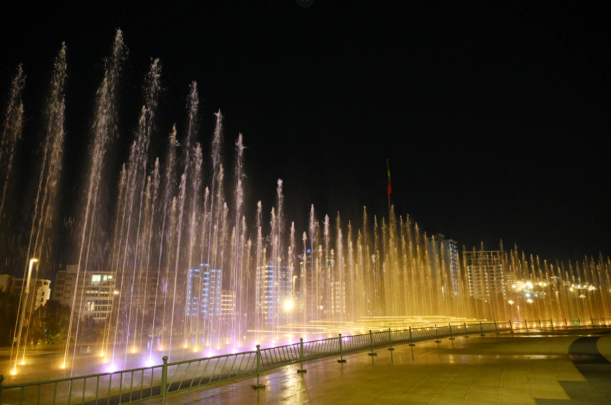 Parkın mərkəzindəki möhtəşəm musiqili fəvvarənin nümayişi ətrafda sehrli bir atmosfer yaradıb. Azərbaycan xalq mahnılarının həzin sədaları altında rəqs edən su damlaları, musiqinin akkordları ilə harmoniya təşkil edərək zərif bir sənət əsərini xatırladıb.