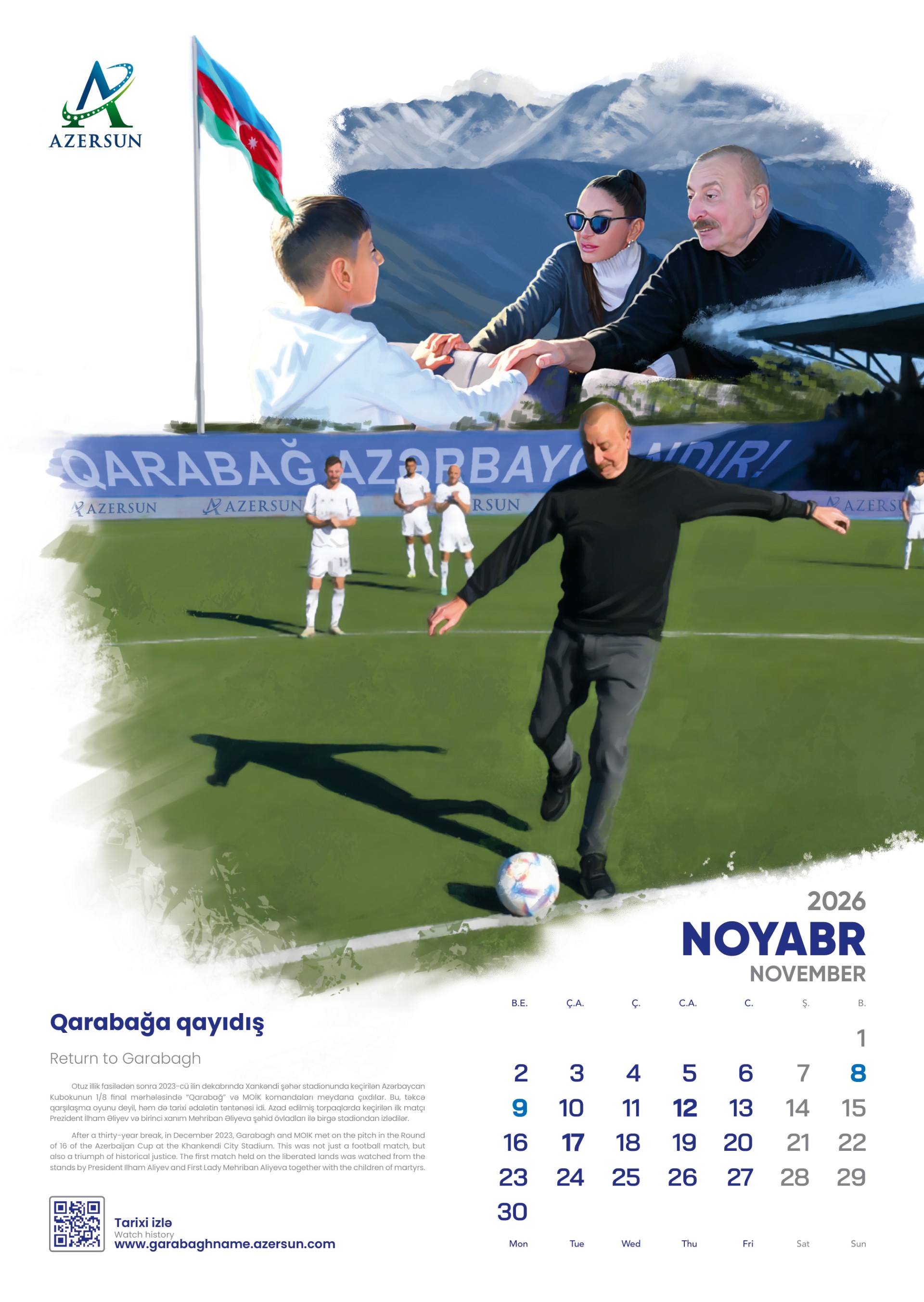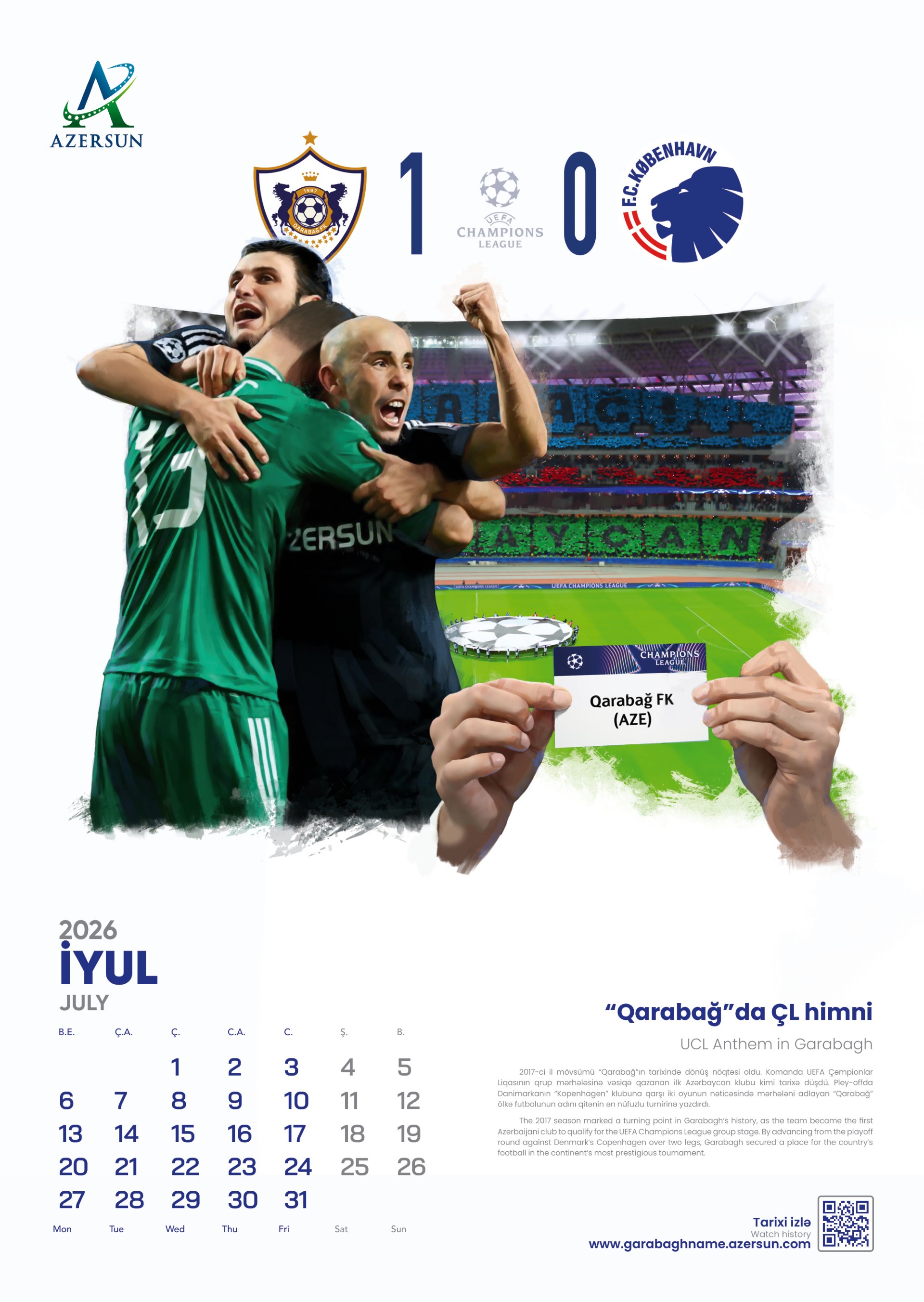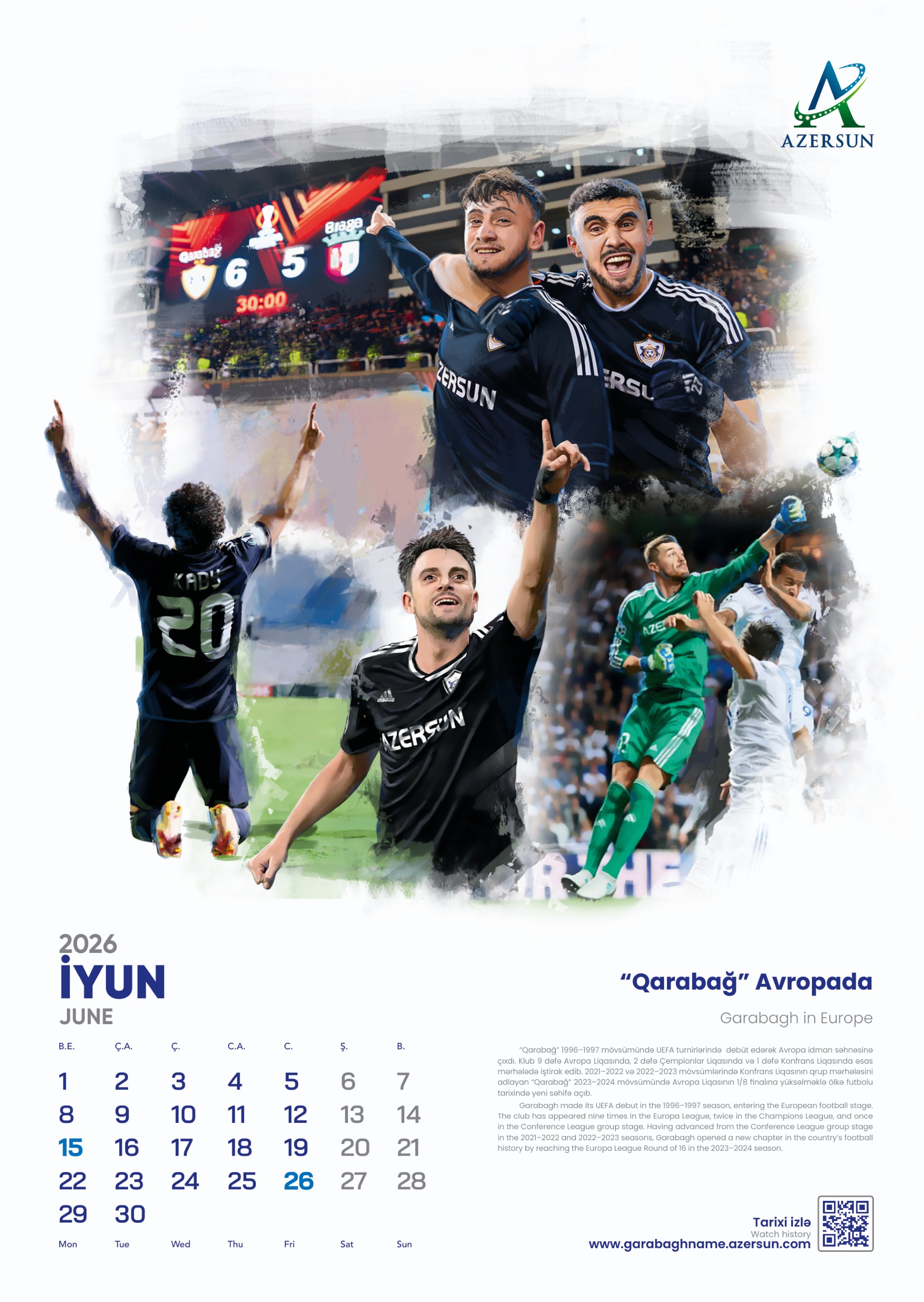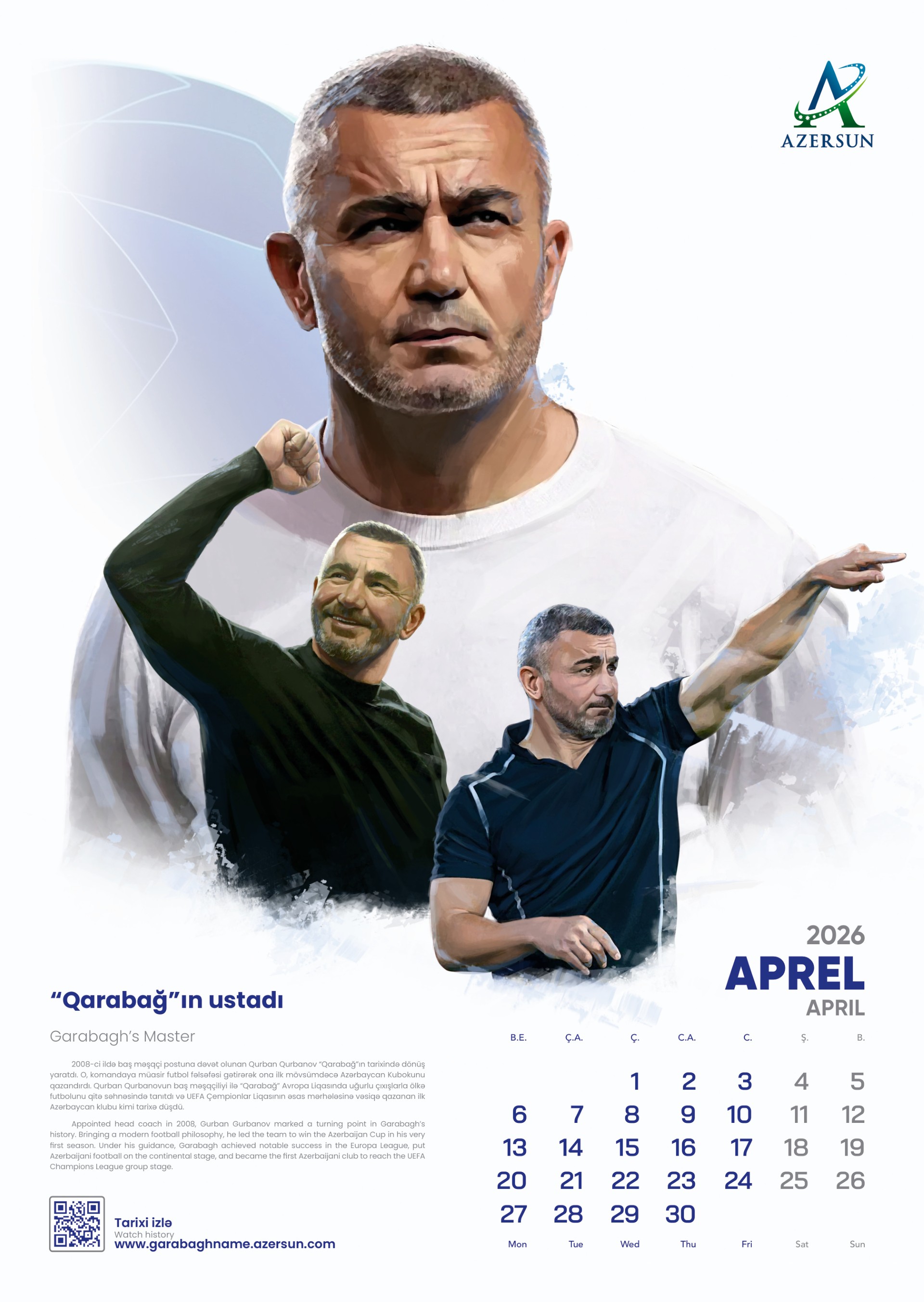 Moderator.az xəbər verir ki, 2026-cı il üçün hazırlanan bu təqvim son illərdə futbol sahəsində qızıl dövrünü yaşayan “Qarabağ” futbol klubuna həsr olunub.