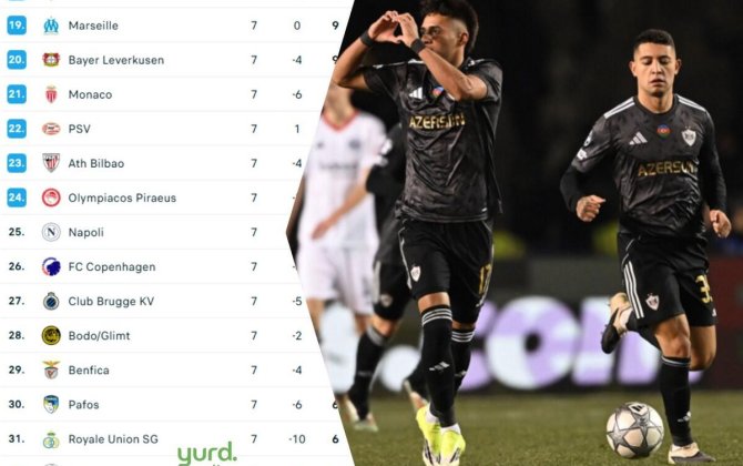 Belə ki, hazırda Azərbaycan klubu ümumi sıralamada 18-ci yerdə qərarlaşıb.