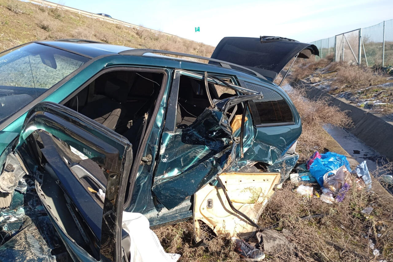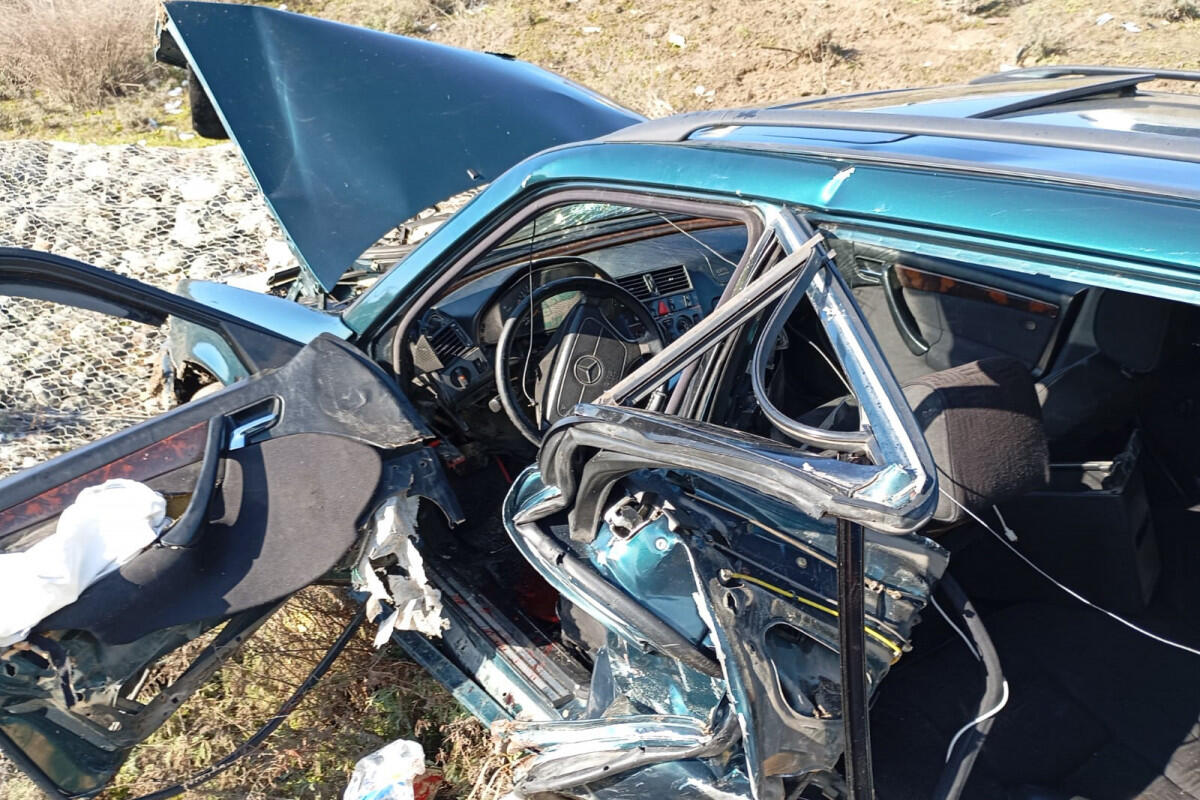 "Mercedes" markalı nəqliyyat vasitəsi sürüşərək yol kənarına aşıb.