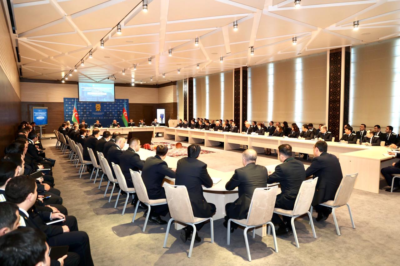 Məruzə ilə çıxış edən Azərbaycan Respublikası Baş prokurorunun müavini - Baş prokuror yanında Korrupsiyaya qarşı Mübarizə Baş İdarəsinin rəisi Nazim Rəcəbov hesabat dövrü ərzində Baş İdarədə baxılmış müraciətlər, cinayət xarakterli məlumatlar, həyata keçirilmiş əməliyyat və qabaqlayıcı tədbirlər, onların müsbət nəticələri, beynəlxalq təşkilatlar və qeyri-hökumət təşkilatları ilə qarşılıqlı əməkdaşlıq, Baş İdarədə başlanmış, ibtidai istintaqı tamamlanmış və məhkəmələrə göndərilmiş cinayət işləri, istintaq zamanı vurulmuş ziyanın ödənilməsi ilə əlaqədar görülmüş tədbirlər barədə olan statistik məlumatları müqayisəli şəkildə təhlil etməklə müşavirə iştirakçılarının diqqətinə çatdırıb.