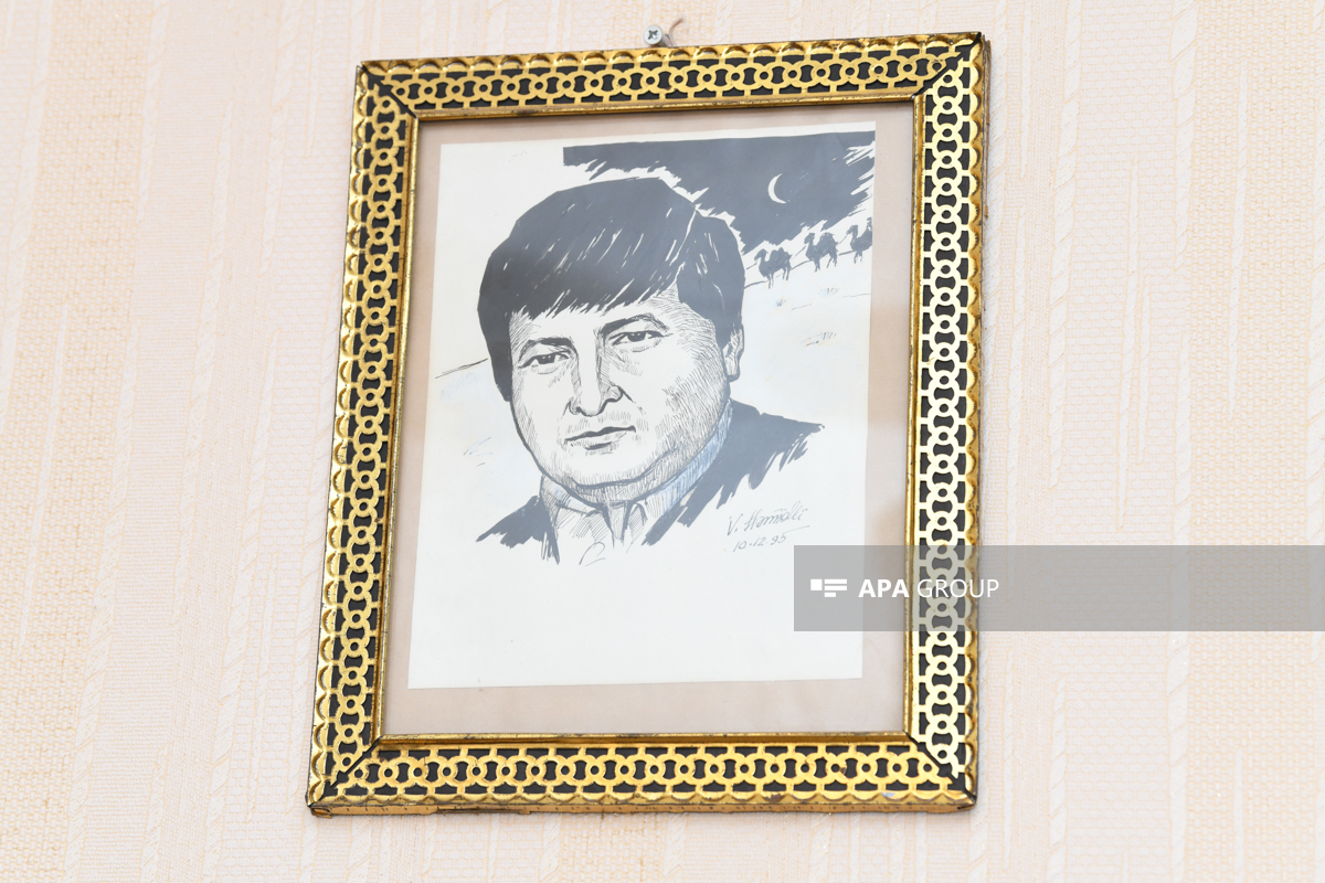 Səliqəli balaca otağa daxil olanda bizi divardakı böyük rəsmi “qarşılayır”. “İndisinə bənzəri yoxdur, amma kim çəkibsə, cizgilərinə kimi yaradıb”, deyirəm ürəyimdə.