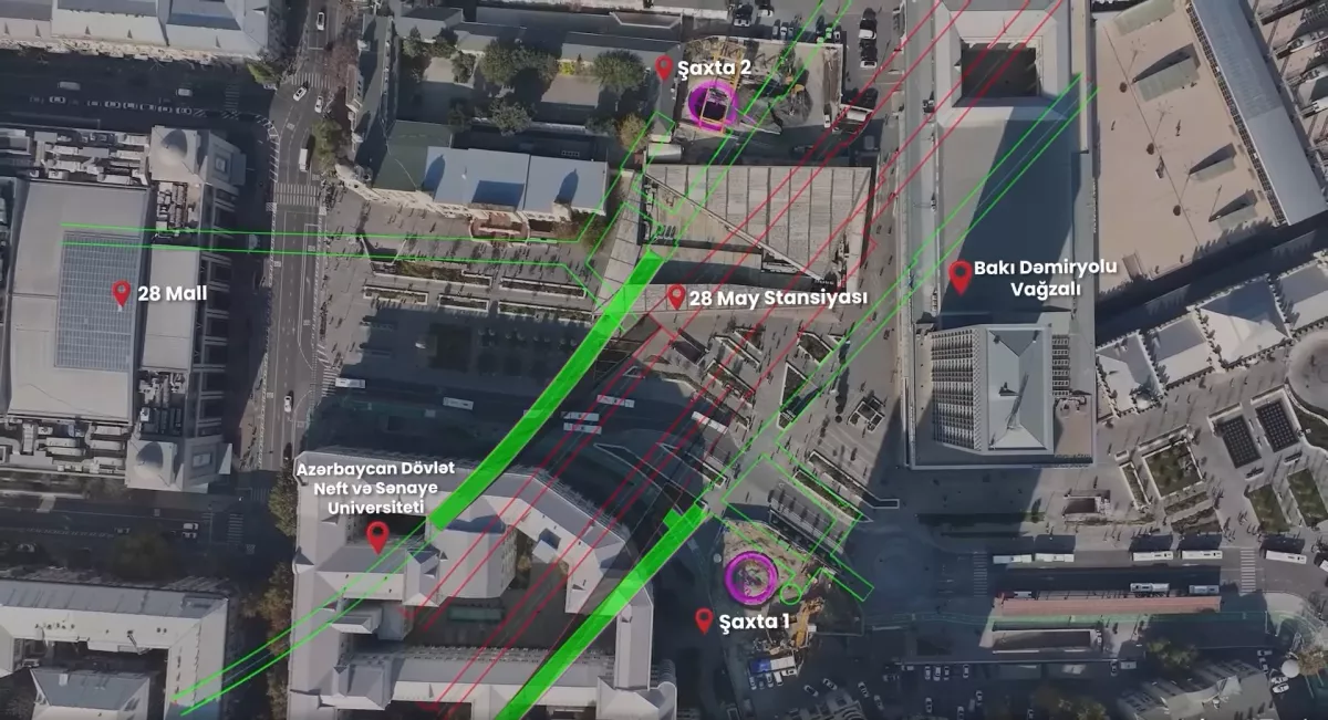 Xətlərin ayrılması üçün “28 May” metro stansiyasının yuxarı hissəsində və stansiyanın qarşısında iki şaxta inşa olunacaq.