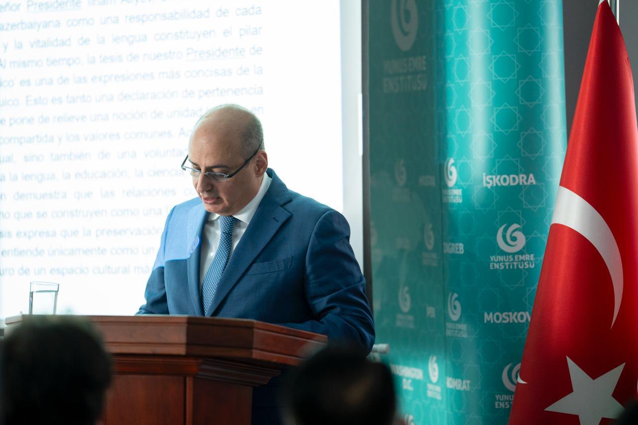 Moderator.az Trend-ə istinadən bildirir ki, konfransda çıxış edən Azərbaycan Respublikasının Meksikadakı fövqəladə və səlahiyyətli səfiri Seymur Fətəliyev mədəniyyətin ayrılmaz tərkib hissəsi olan və xalqlarımızı birləşdirən ortaq dil amilinin əhəmiyyətini vurğulayıb. O, çıxışında UNESCO Baş Konfransının 2025-ci ildə Özbəkistanın Səmərqənd şəhərində baş tutmuş 43-cü sessiyası zamanı 15 dekabr tarixinin "Ümumdünya Türk Dili Ailəsi Günü" kimi elan edilməsini əlamətdar hadisə kimi dəyərləndirib, bunun türk dilinin universal mədəni müxtəlifliyin ayrılmaz tərkib hissəsi kimi tanınması istiqamətində mühüm addım olduğunu bildirib. S.Fətəliyev türk dili ailəsinin qorunması, inkişafı və beynəlxalq səviyyədə tanıdılmasına xidmət edən bu təşəbbüsün ilk günlərdən etibarən Azərbaycan tərəfindən dəstəkləndiyi barədə məlumat verib. Səfir qeyd edib ki, Azərbaycan Respublikasının Prezidenti cənab İlham Əliyevin "bizim ailəmiz türk dünyasıdır" tezisi həm mənsubiyyətin, həm məsuliyyətin bəyanıdır, bu yanaşma ortaq tarixə, ortaq mədəni yaddaşa və ortaq dəyərlərə söykənən birlik anlayışını önə çəkir. Sonda S.Fətəliyev vurğulayıb ki, türk dili ailəsinin zənginliyinin dünyaya tanıdılması üçün "elan olunmuş bir gün" kifayət deyil, bunun ardınca real və davamlı iş aparılmalı, dil diplomatiyası sistemləşdirilməlidir.